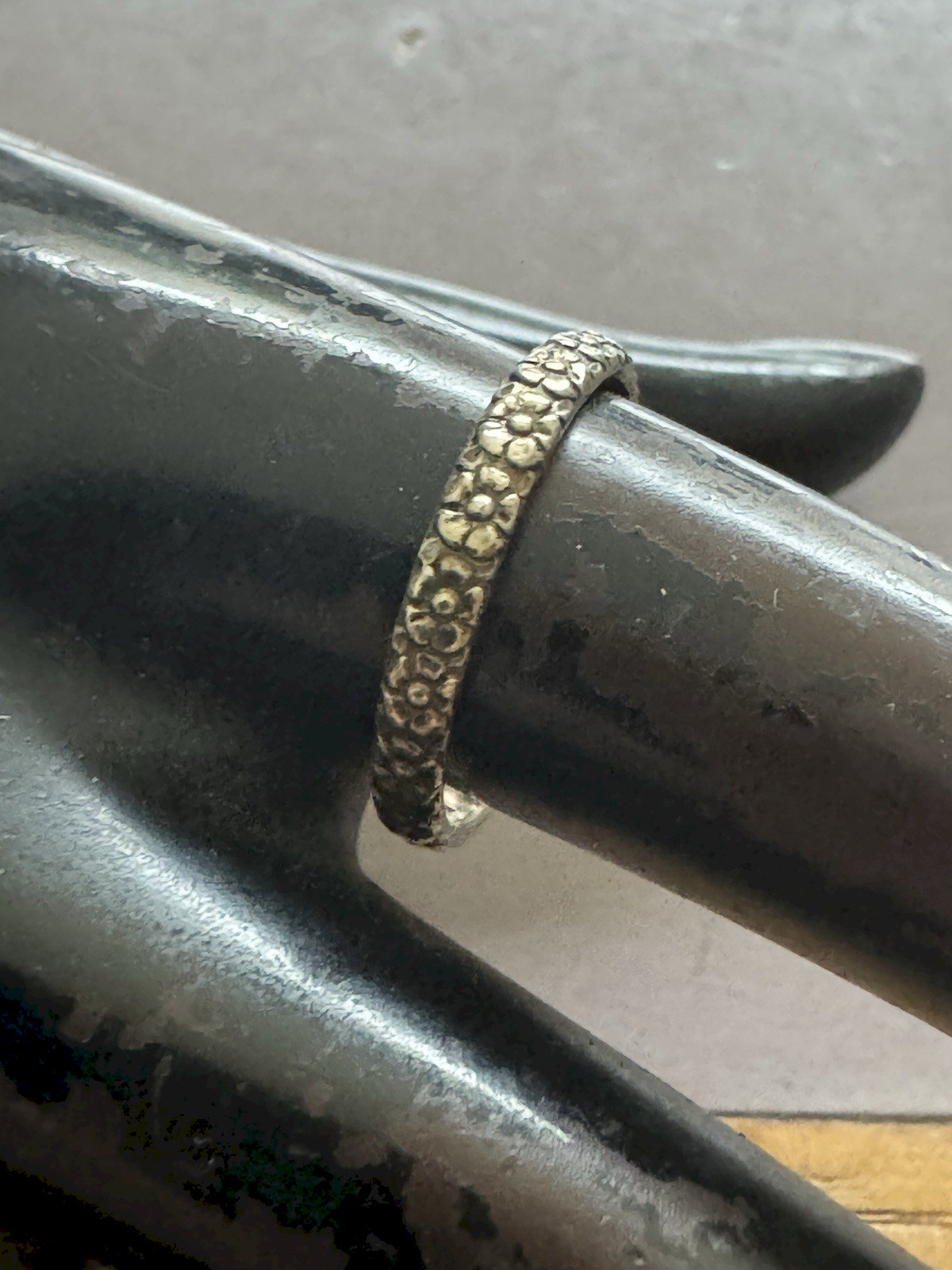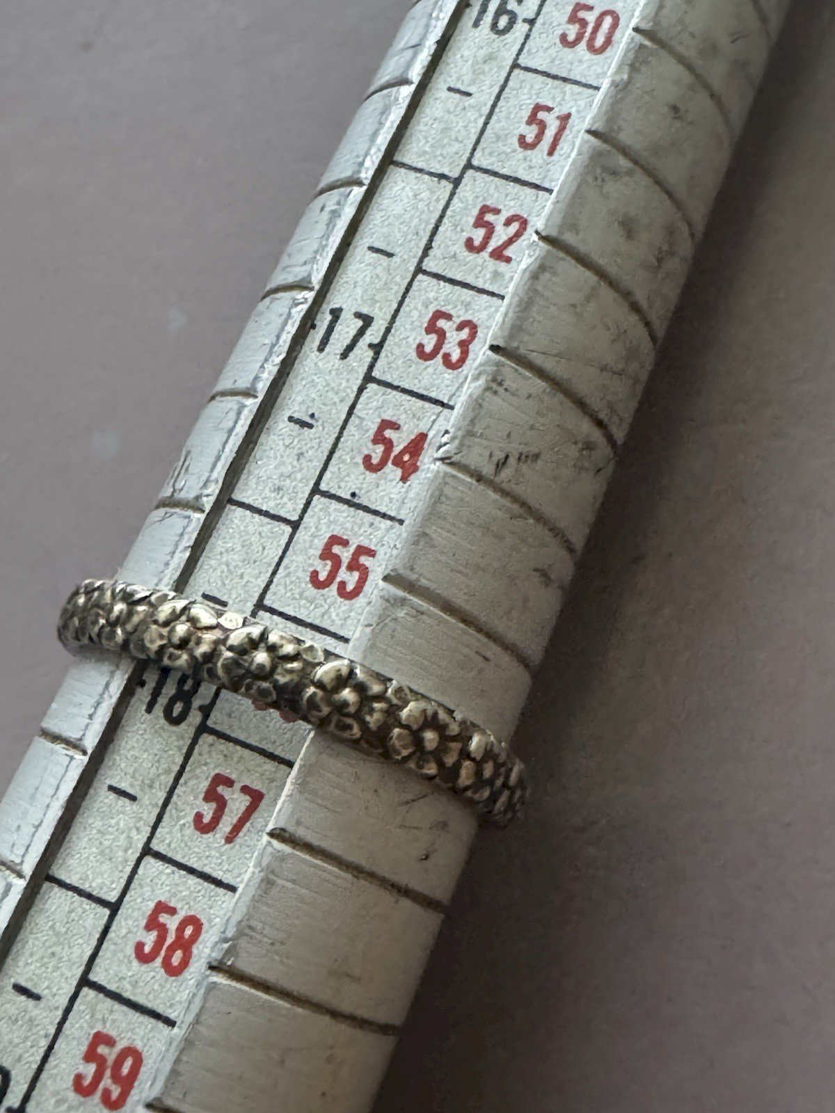 Alliance 19 eme siecle Argent Vermeil Unisexe taille 56 FR Magnifique alliance ancienne (argent testée avec acide approprié à l’argent à la pierre et poinçonnée 835,datant de la fin du XIXe siècle. Cette pièce rare provient d’un ancien stock de bijouterie, jamais vendu, ce qui en fait un bijou neuf d’époque, en excellent état de conservation. D’une grande finesse, l’anneau mesure environ 17,7mm de diamètre intérieur. Il est orné d’un motif gravé en frise continue de fleurettes dans un style délicatement rythmé. Ce graphisme raffiné, à la fois fluide et structuré, évoque les décors ornementaux des arts décoratifs de la fin du XIXe siècle, et confère à la bague une élégance intemporelle. ✨ Caractéristiques : • Matière : argent patiné ancienne • État : Neuf ancien (jamais porté) • Époque : Fin XIXe siècle • Provenance : Stock ancien de bijouterie • Taille : 56 FR (diamètre intérieur env. 17,7 mm) Hauteur de l’alliance environ 2 mm État:Neuf sans emballage: Objet neuf, jamais porté, vendu sans l'emballage d'origine ou dont une partie ...Neuf sans emballage: Objet neuf, jamais porté, vendu sans l'emballage d'origine ou dont une partie du matériel d'emballage d'origine est manquante (comme la boîte ou la pochette d'origine). Les étiquettes d'origine peuvent ne pas être attachées. Par exemple, une paire de chaussures neuves (sans aucune marque d'usure) sans sa boîte d'origine appartient à cette catégorie. Pierre dominante:Aucune Pierre. Type:Alliance Marque:Bague Ancienne Couleur dominante:Argenté Taille:56 Matière:Non Métal:Argent sterling Forme de la bague:Alliance
