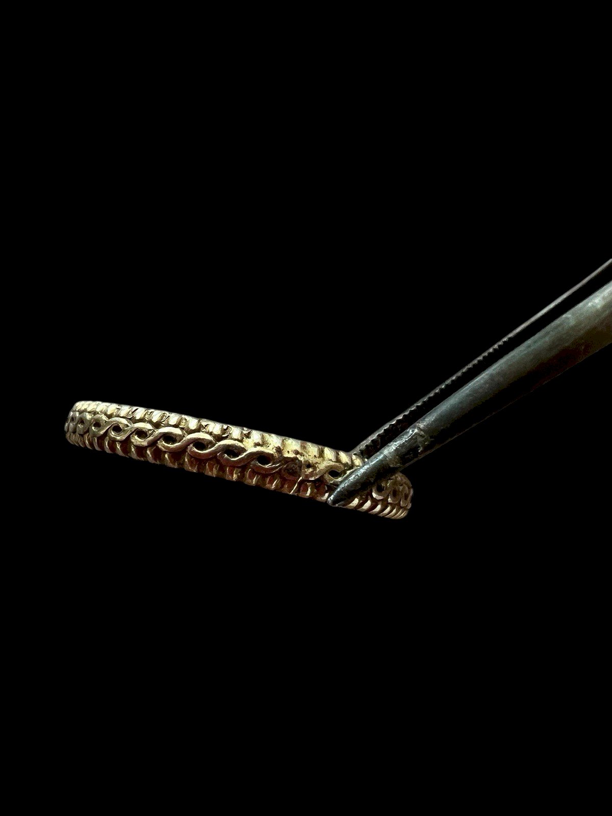 Alliance 19 eme siecle Argent Vermeil Unisexe taille 61,5FR Magnifique alliance ancienne en vermeil (argent testée avec acide approprié à l’argent à la pierre de touche, et recouvert d’une couche légère de plaqué or) et poinçonnée 835 datant de la fin du XIXe siècle. Cette pièce rare provient d’un ancien stock de bijouterie, jamais vendu, ce qui en fait un bijou neuf d’époque, en excellent état de conservation. D’une grande finesse, l’anneau mesure environ 19,8 mm de diamètre intérieur. Il est orné d’un motif gravé en frise continue, associant volutes et arabesques géométriques dans un style délicatement rythmé. Ce graphisme raffiné, à la fois fluide et structuré, évoque les décors ornementaux des arts décoratifs de la fin du XIXe siècle, et confère à la bague une élégance intemporelle. ✨ Caractéristiques : • Matière : Vermeil (argent avec plaquage or) • État : Neuf ancien (jamais porté) • Époque : Fin XIXe siècle • Provenance : Stock ancien de bijouterie • Taille : 61,5 (diamètre intérieur env. 19,8 mm) • Largeur de l’anneau environ: 2 mm • Motif : Frise gravée de spirales et arabesques L’écrin ne fait pas partie du lot Il me reste en tout 5 alliances de ce stock ancien, les tailles sont les suivantes 58FR. Soit environ 18,5mm de diamètre intérieur 54,5FR. Soit environ sous 17,3 mm de diamètre intérieur. 53FR soit environ 16,9mm de diamètre intérieur. 52FR soit environ 16,5mm de diamètre intérieur « Le prix correspond à une seule alliance. Merci de m’indiquer la taille désirée » Les Couleurs peuvent varier très légèrement d’une bague à l’autre État:Neuf sans emballage: Objet neuf, jamais porté, vendu sans l'emballage d'origine ou dont une partie ...Neuf sans emballage: Objet neuf, jamais porté, vendu sans l'emballage d'origine ou dont une partie du matériel d'emballage d'origine est manquante (comme la boîte ou la pochette d'origine). Les étiquettes d'origine peuvent ne pas être attachées. Par exemple, une paire de chaussures neuves (sans aucune marque d'usure) sans sa boîte d'origine appartient à cette catégorie. Pierre dominante:Aucune Pierre. Type:Alliance Marque:Bague Ancienne Couleur dominante:Argenté Taille:61 Matière:Non Métal:Argent sterling Forme de la bague:Alliance