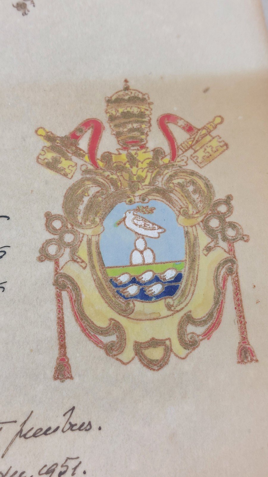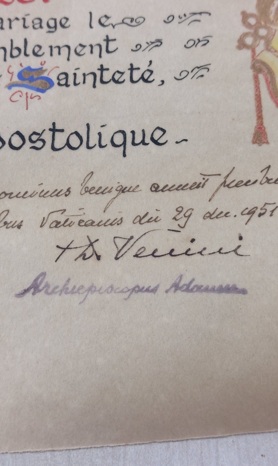 Ancienne bénédiction apostolique sur parchemin, Pape Pie XII, mariage 1951