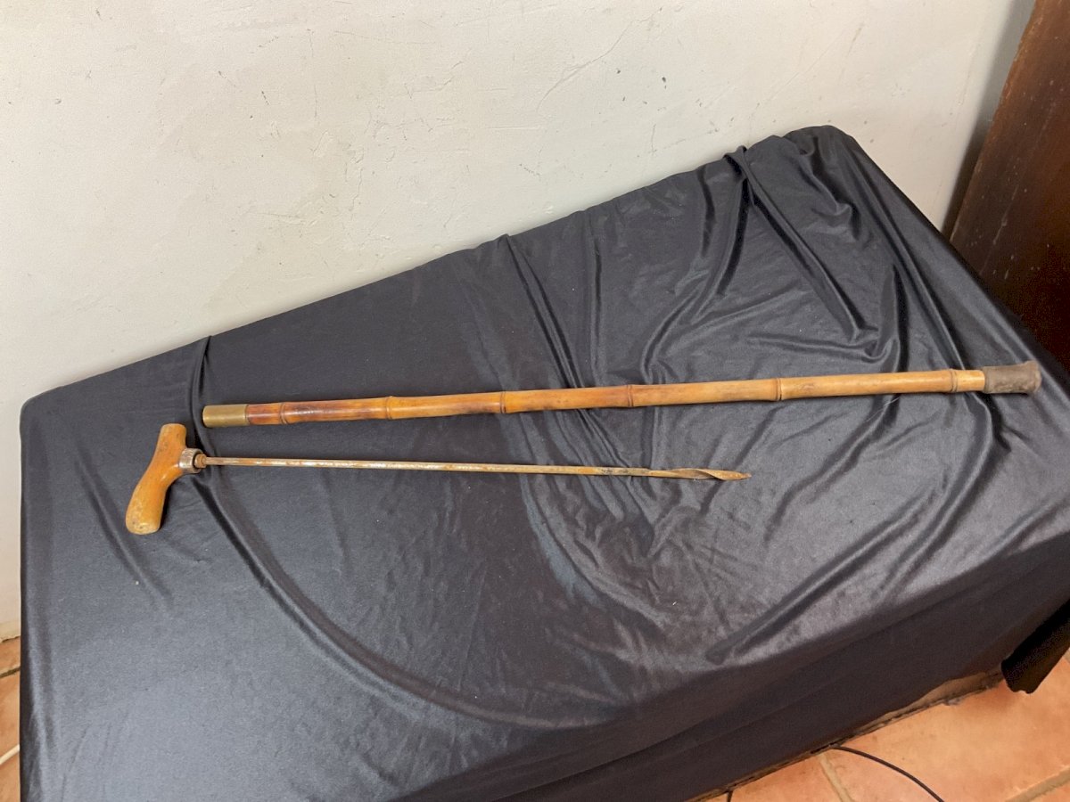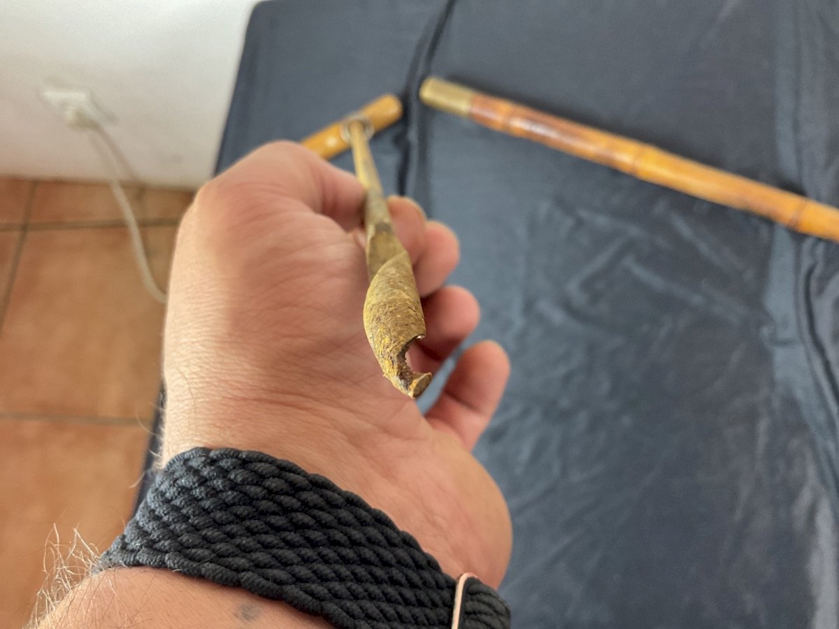 Ancienne CANNE DE MÉTIER A SYSTEME CANNE VRILLE