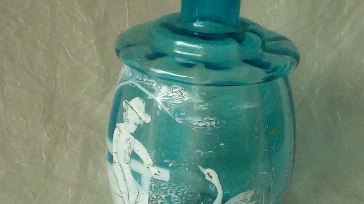 ANCIENNE CARAFE EN VERRE EMAILLEE MARY GREGORY FIN 19 éme**