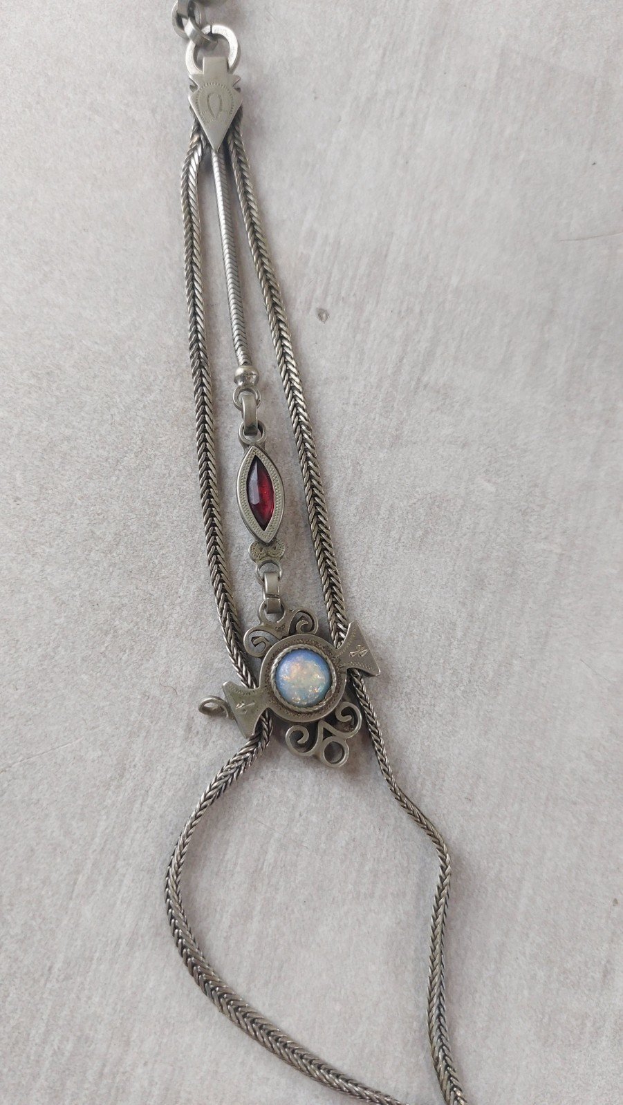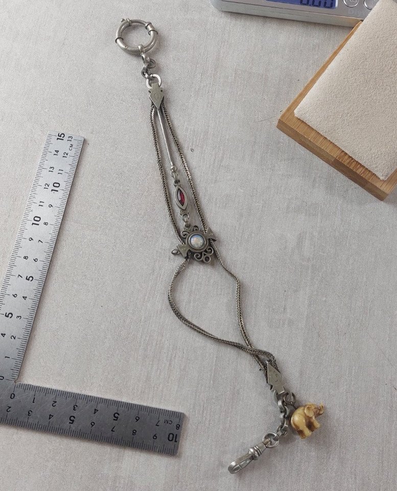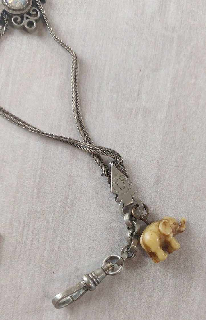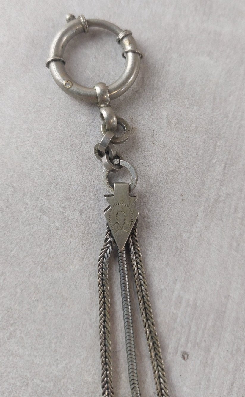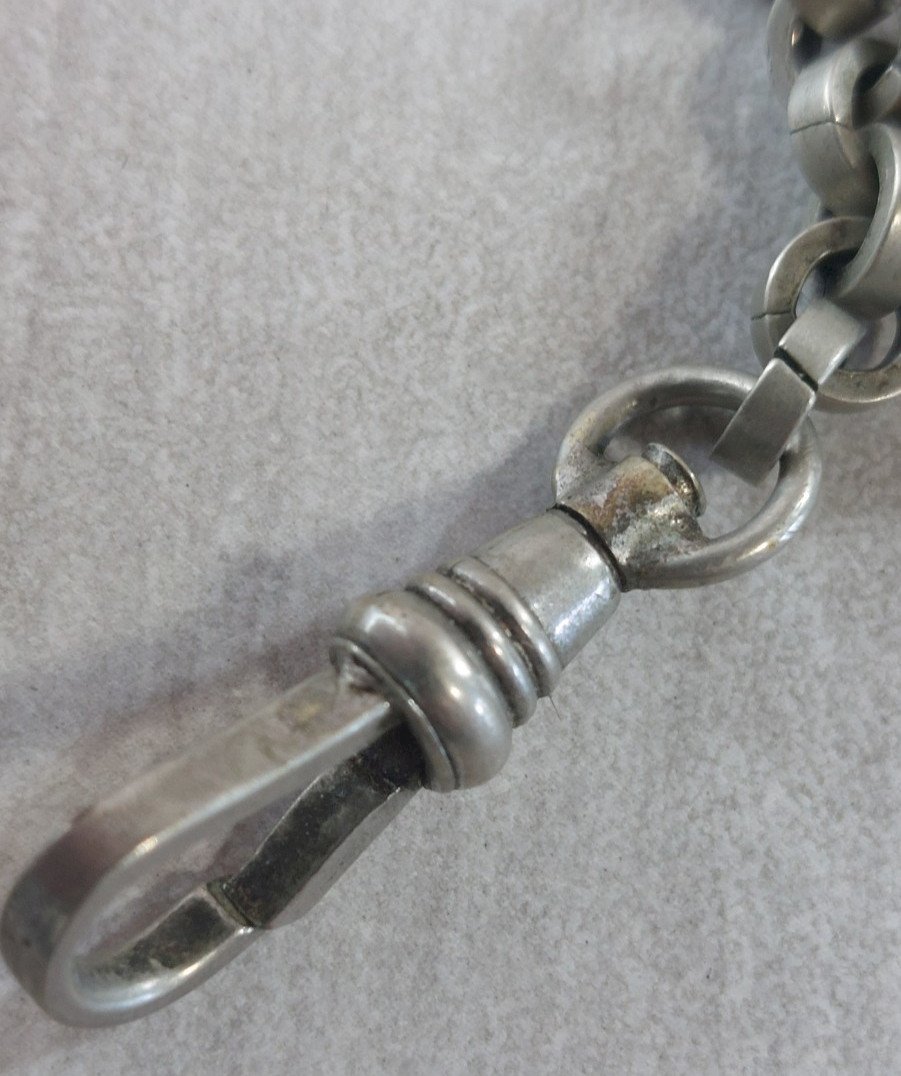 Ancienne chaîne de montre gousset, en métal argenté