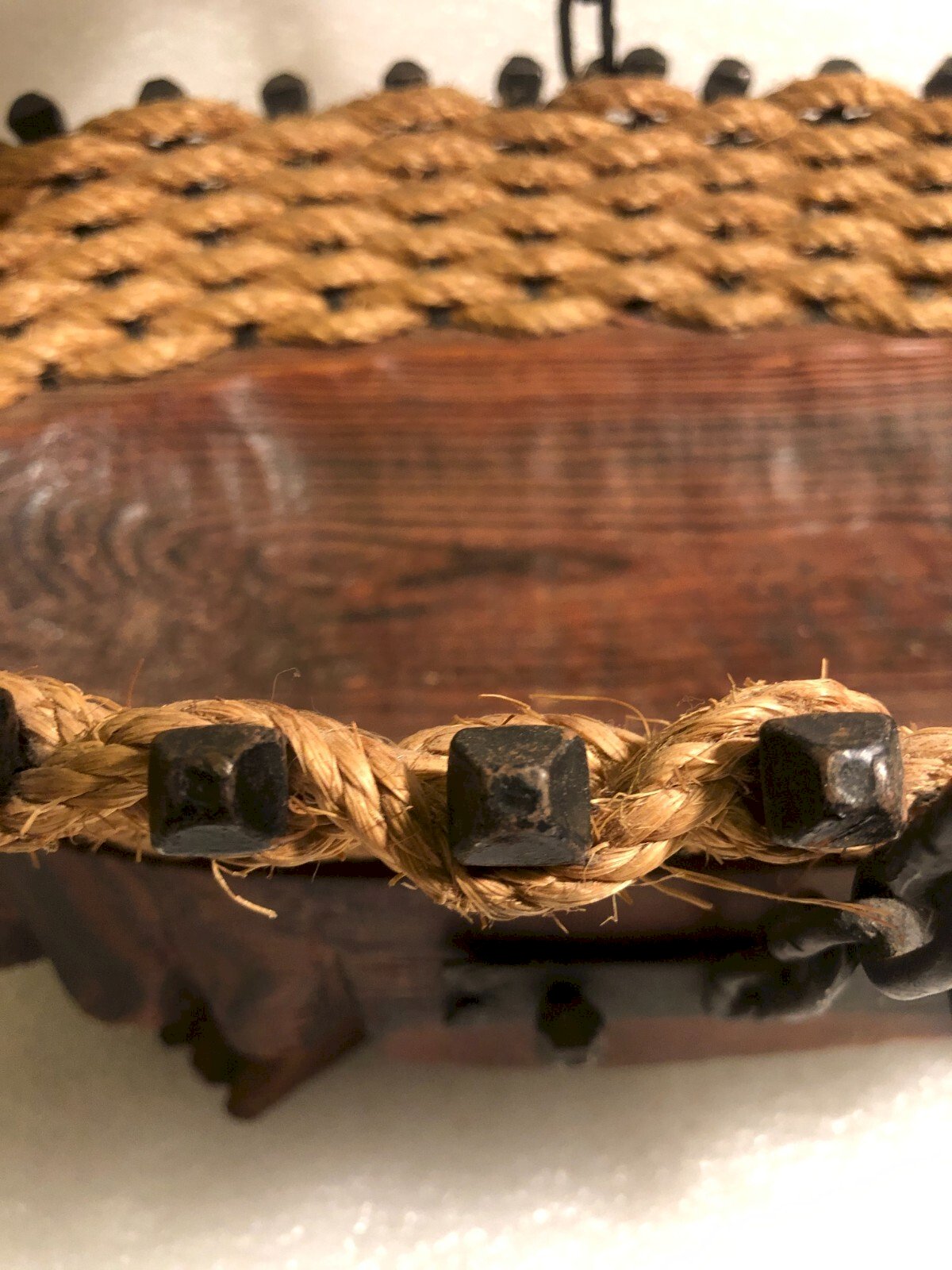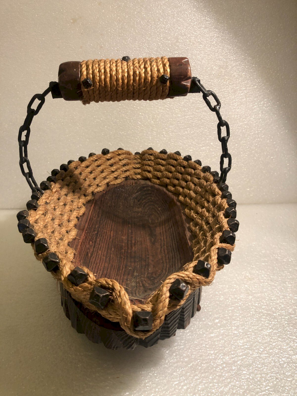 Ancienne coupe à fruits forme Panier vintage bois ficelle clous campagne