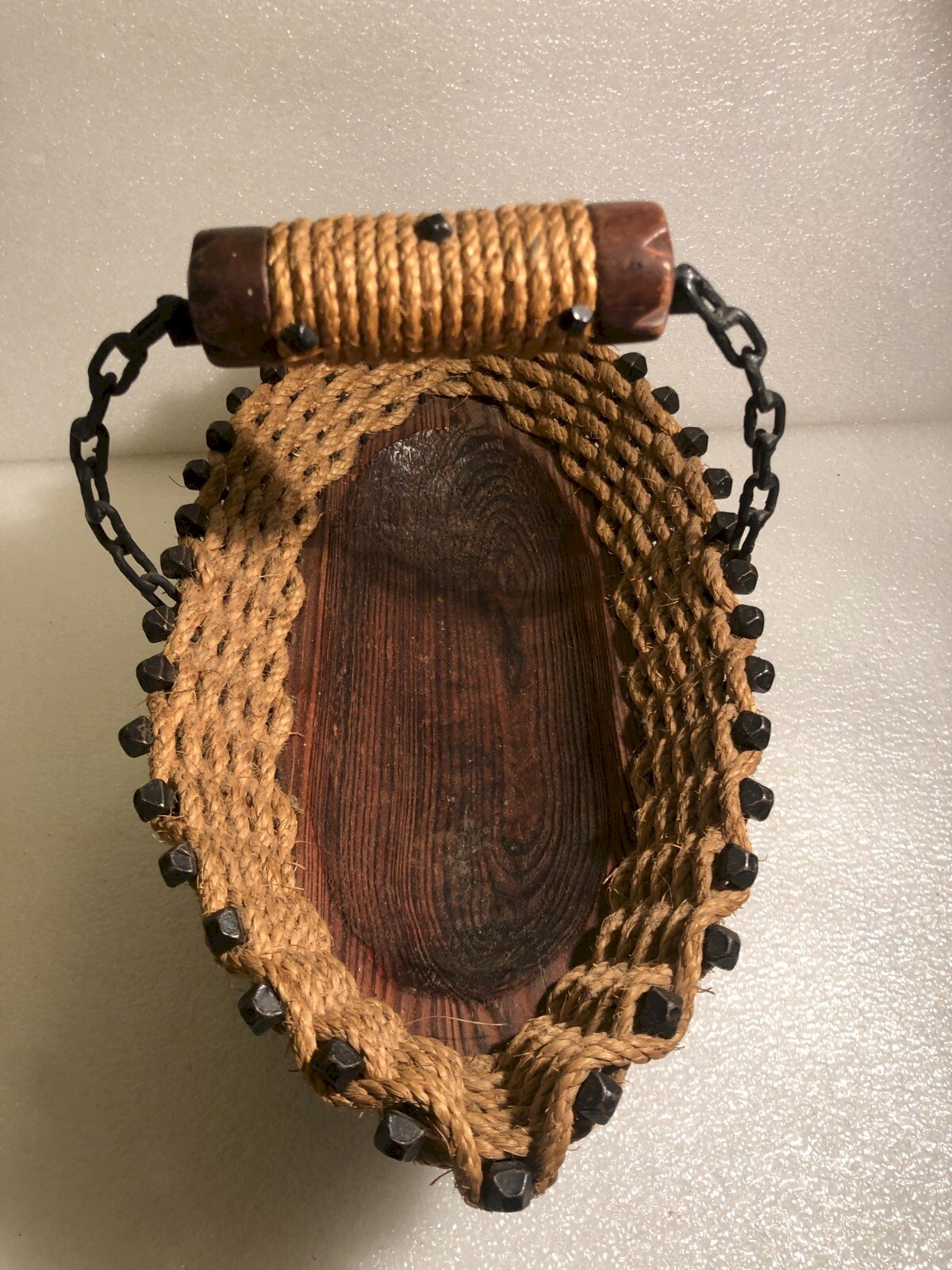 coupe à fruits panier  en bois ficelle et clous  beau travail artisanal  à signaler un petit éclat sur l'un des pied ( voir photo )  dim long 38 cm larg 20 cm haut totale 24 cm poids 1.500 kg  Regardez les photos ci-dessus qui auront également valeur de descriptif. Emballage soigné et sécurisé avec possibilité d’envoi par la poste à sélectionner lors de votre achat pour le calcul des frais de port. (sinon envoi Mondial Relay classique) merci à tous et bonne chine dans ma boutique. renvoi accepté  dans 1 délai de 14 jours à partir de la réception, retour dans son emballage d'origine, dans son état initial,pas de remboursement pour les objets retournés cassés ou perdus par le transporteur,retour à la charge de l'acheteur . Authenticité:Original Poids:344 Marque:inconnue Type:Arts de la table, Cuisine Période:Design du XXème Origine:France Sous-type:Panier Hauteur:36 Matière:Bois Longueur:0 Largeur:37