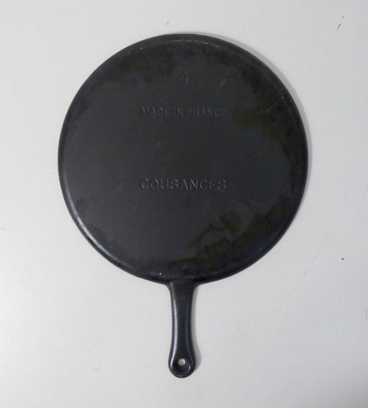 Ancienne crêpière, galetière en fonte. art populaire, Cousances. Diamètre: 27 cm. Hauteur: 1 cm. Cette galetière est en très bon état, avec des traces d'usage superficielles. Elle est parfaitement fonctionnelle. Objet emblématique et incontournable de notre belle Bretagne. Peut-être détournée pour bien d'autres préparations. L'envoi sera particulièrement soigné, parfaitement protégé. État:Occasion: Objet ayant été utilisé. Objet présentant quelques marques d'usure superficielle, ...Occasion: Objet ayant été utilisé. Objet présentant quelques marques d'usure superficielle, entièrement opérationnel et fonctionnant correctement. Il peut s'agir d'un modèle de démonstration ou d'un objet retourné en magasin après une courte période d'utilisation. les éventuelles imperfections. Marque:Le Creuset Type de cuisinière compatible:Gaz