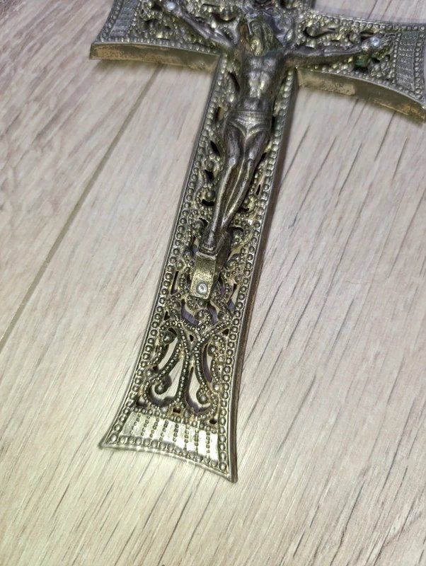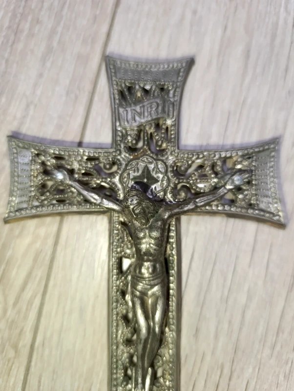 Ancienne croix en métal bien travaillé en.bon état Beau modèle sans doute premiere partie du 20 eme siècle Dimension 16x9.5cm