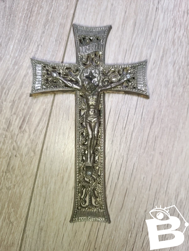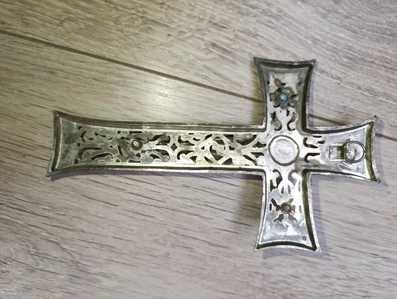 Ancienne croix en métal bien travaillé en.bon état Argenté