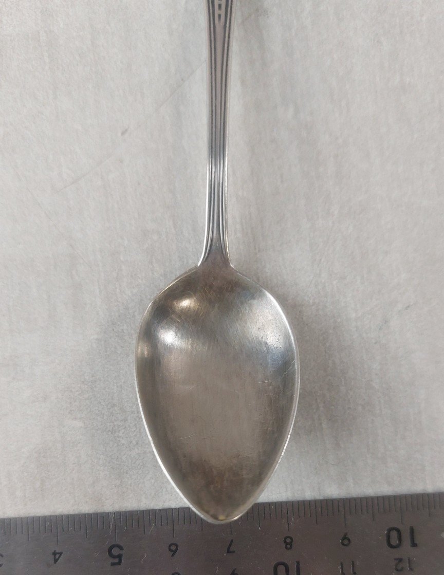 Ancienne cuillère à dessert, en argent, XXème en bon état marquée 800 longueur 12,8 cm poids 12,96 gr voir photos  Consultez mes autres objets  !  réduction des frais de port en cas d'achat groupé Matière:argent Pays d'origine:France