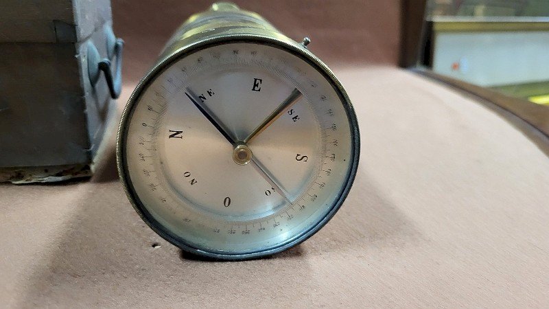 ANCIENNE EQUERRE D'ARPENTEUR AVEC BOUSSOLE INSTRUMENT SCIENTIFIQUE GEOMETRE