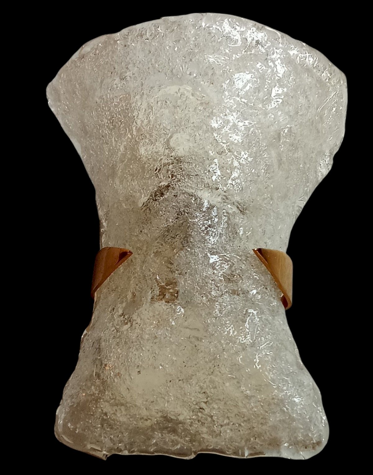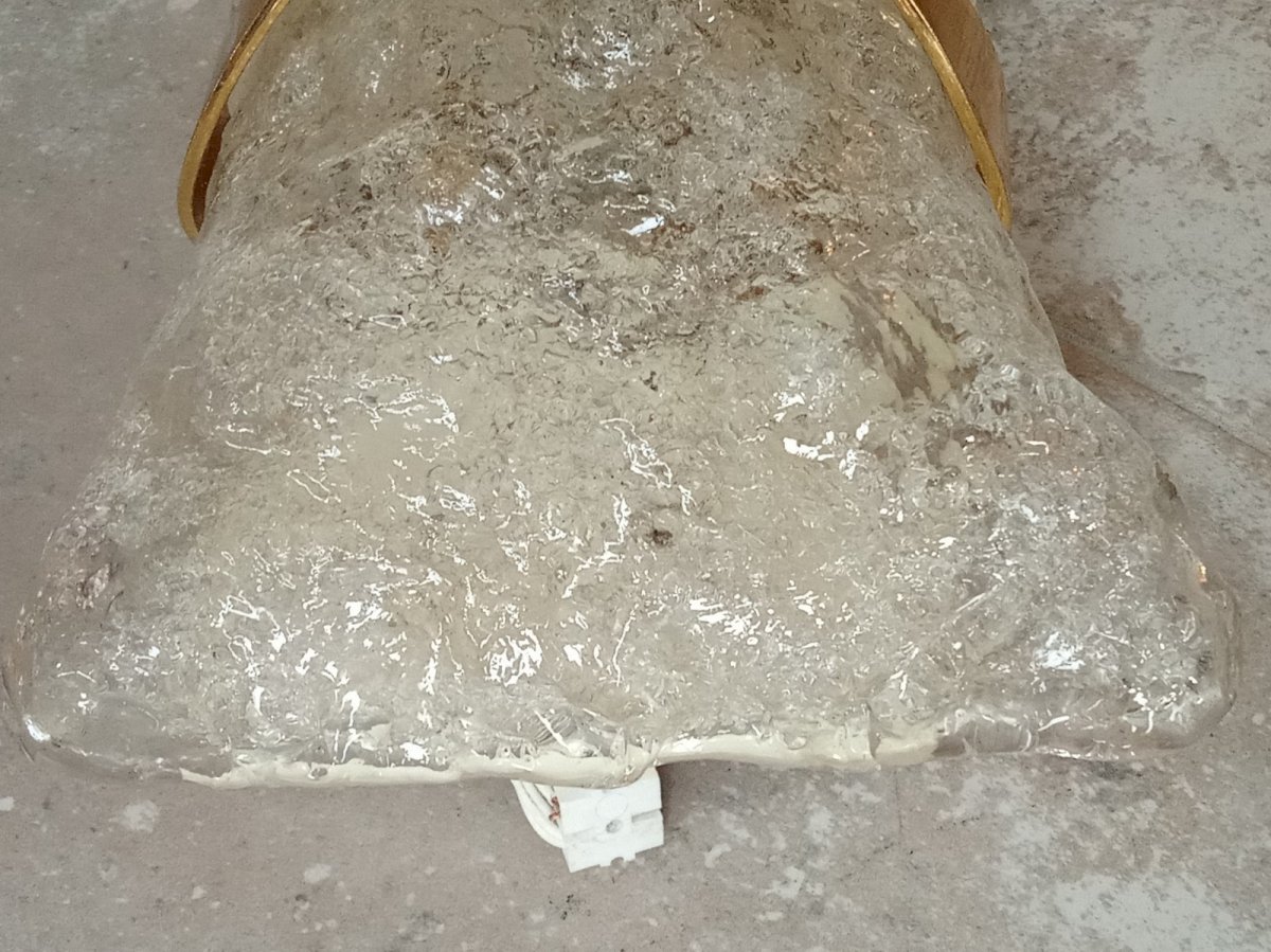 Magnifique Applique murale En verre glacé Murano Par Egon Hillebrand Datant des années 1960. Parfait état. Très belle pièce design Électricité à revoir. Hauteur : 29 cm Largeur : 24,6 cm Type:Applique Matière:Verre