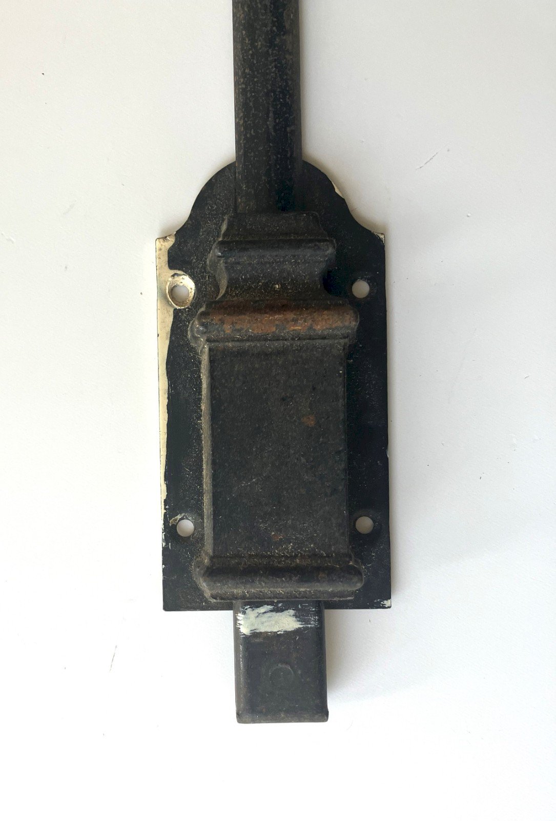 ancienne grande targette clenche verrou de porte portail bouton en laiton longueur 50 cm bon etat general - fonctionnelle - des residus de peinture (a enlever avec de l acetone) expedition par MONDIALRELAY