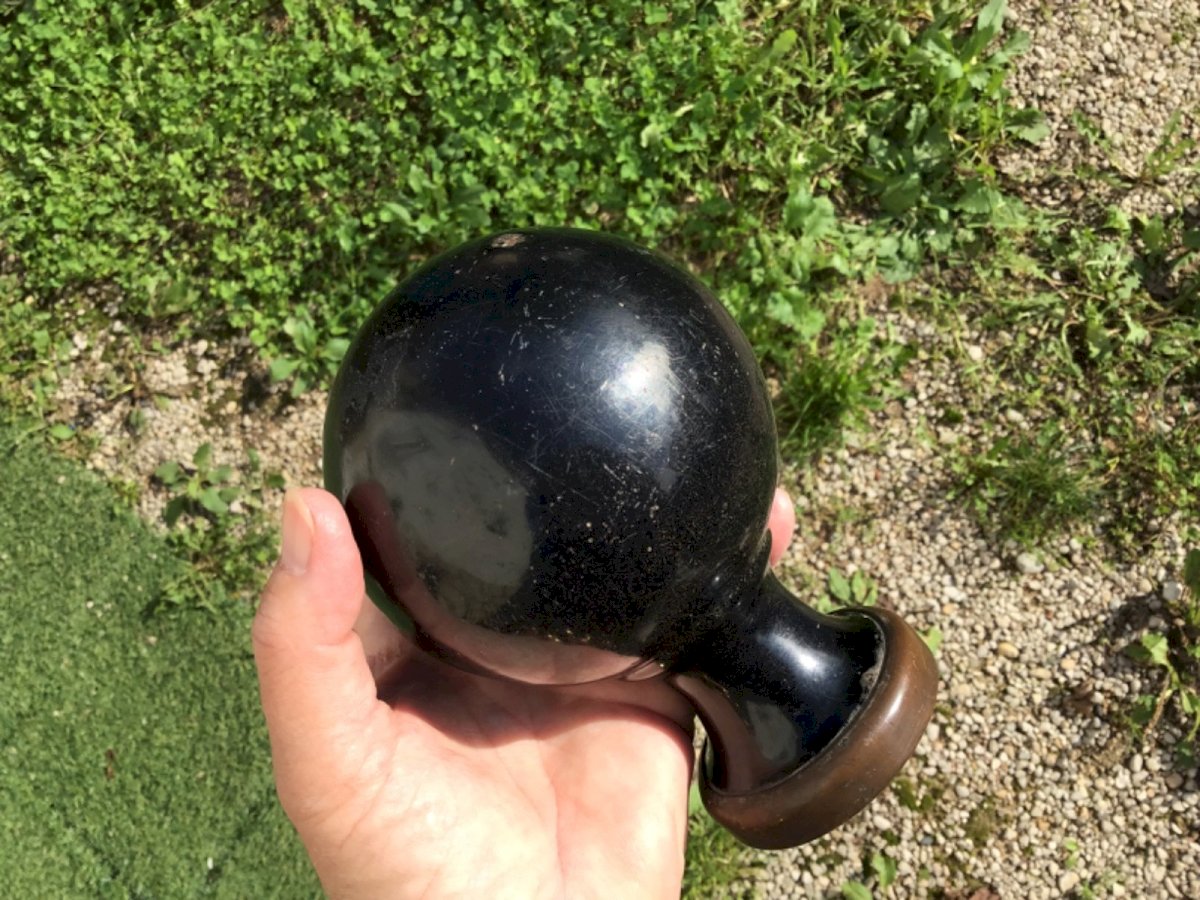 ANCIENNE GROSSE BOULE D ESCALIER EN FONTE DE FER ÉMAILLÉE NOIRE OBJET DE METIER