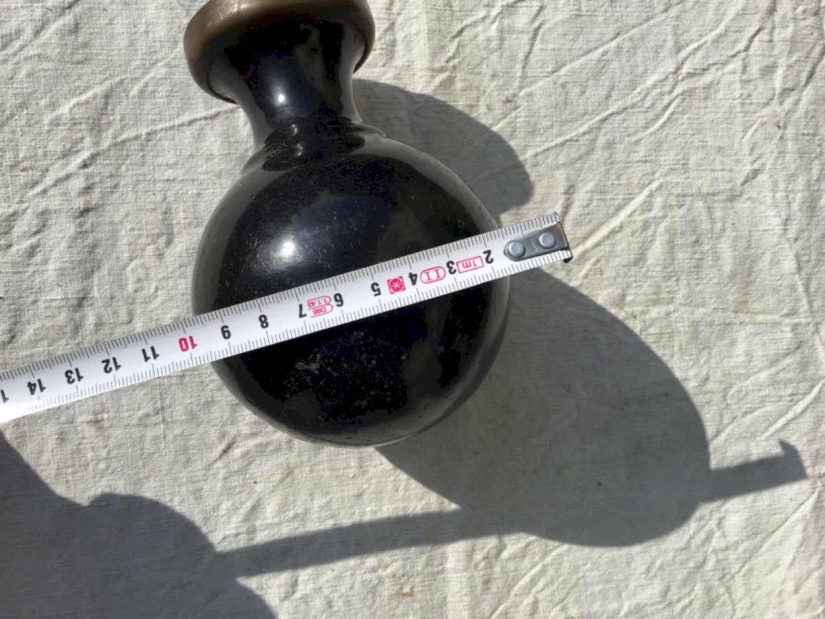 Grosse boule d’escalier en fonte de fer de couleur noir  Quelques légères traces du temps  Dimensions sur photo diamètre 13 Type:Boule d'escalier Période:Design du XXème Pays de fabrication:France Hauteur:15 cm Matière:Fonte Style:1940-1960