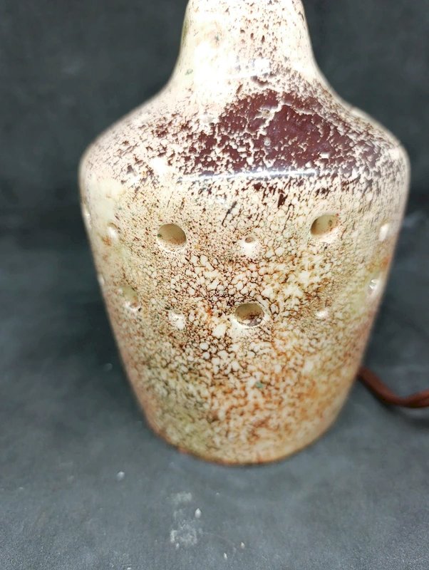 ancienne lampe de table année 50-60 en bon etat travail original avec cette couleur tres particuliere hauteur avec douille 19cm un peu d'oxydation au niveau de la douille origine a determiner...