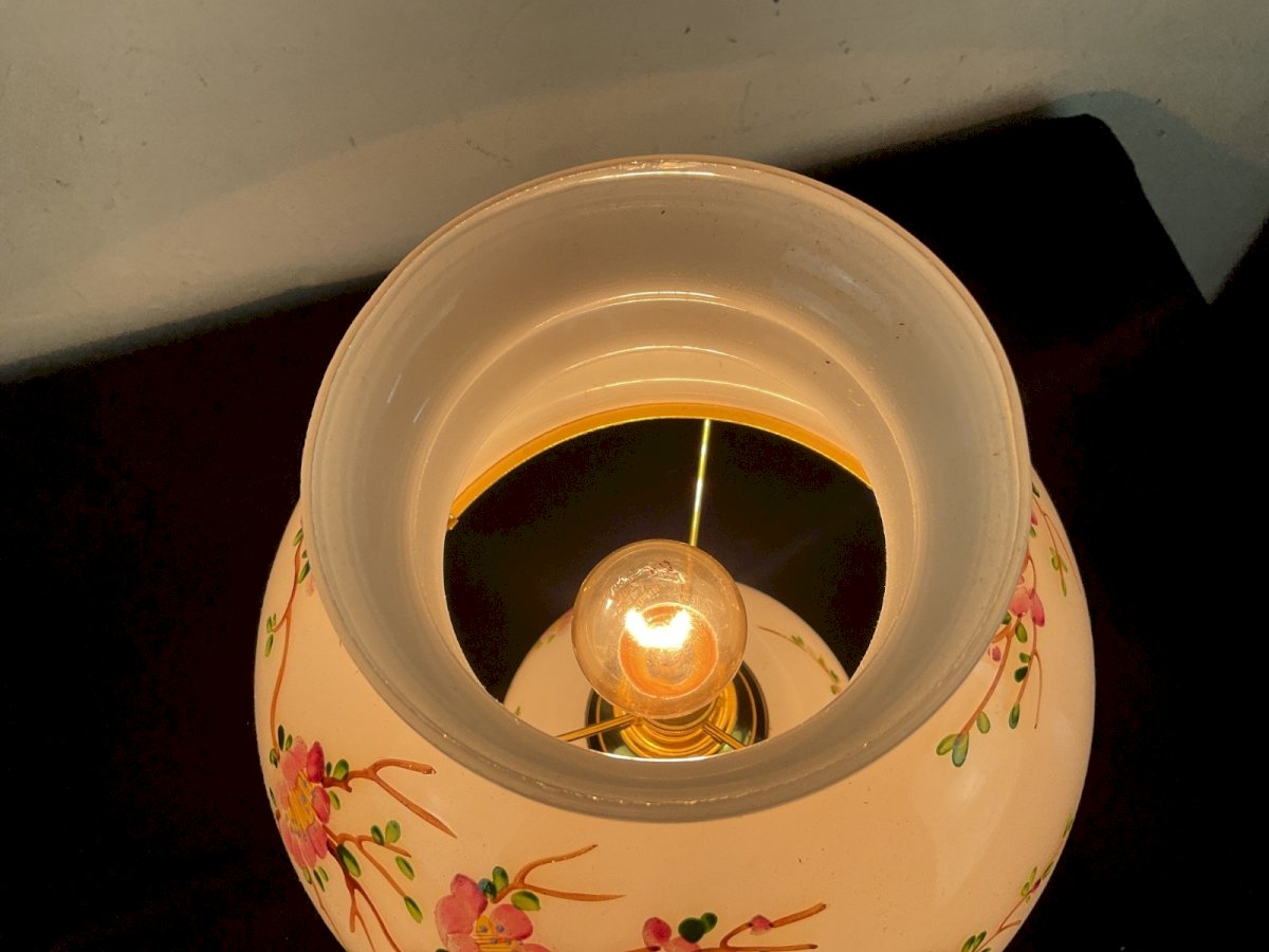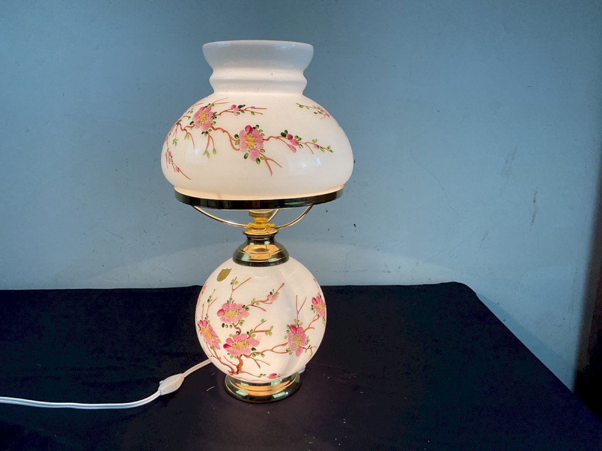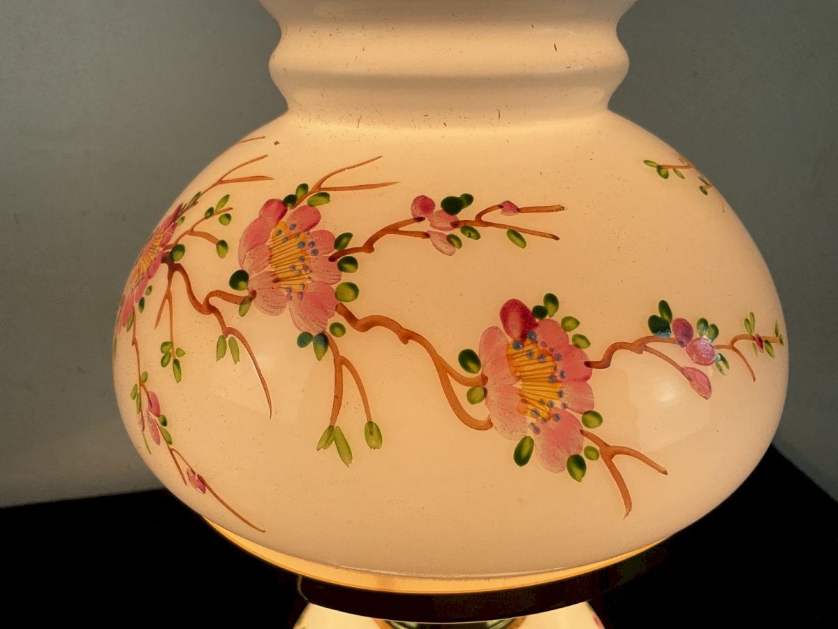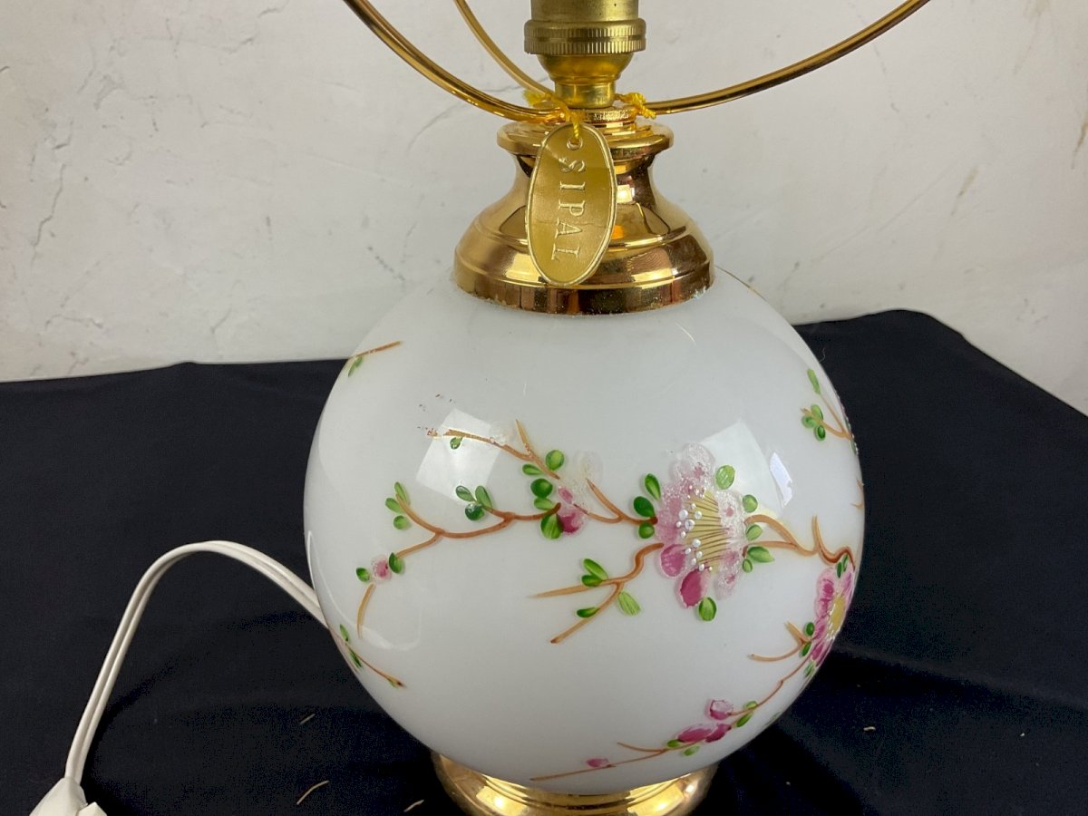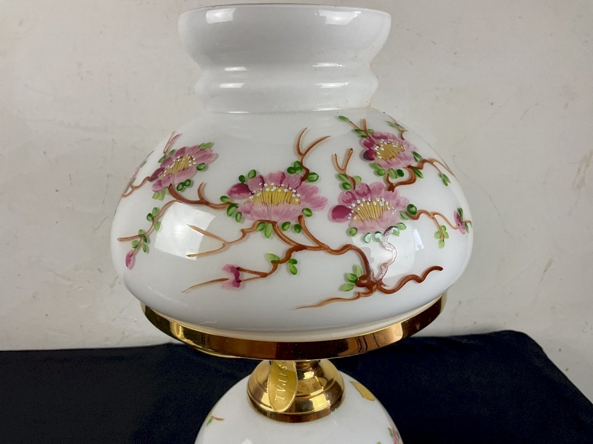 Ancienne lampe en opaline décor floral émaillée , années 1950