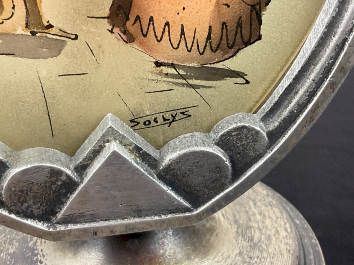 Ancienne Lampe veilleuse ART DECO verre peint et signé