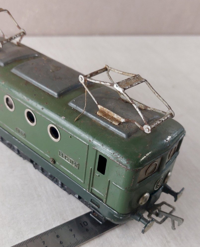 Ancienne locomotive, BB 8101, en métal, Jep, en 0 en bon état, mais ne fonctionne pas, des usures de peinture marquée BB-8101, SNCF Jep, Made in France poids 940 gr v oir photos Consultez mes autres objets ! réduction des frais de port en cas d'achat groupé État:OccasionObjet ayant été utilisé. les éventuelles imperfections. Marque:JEP Type:Locomotive électrique Numéro de pièce fabricant:BB-8101 Matière:métal