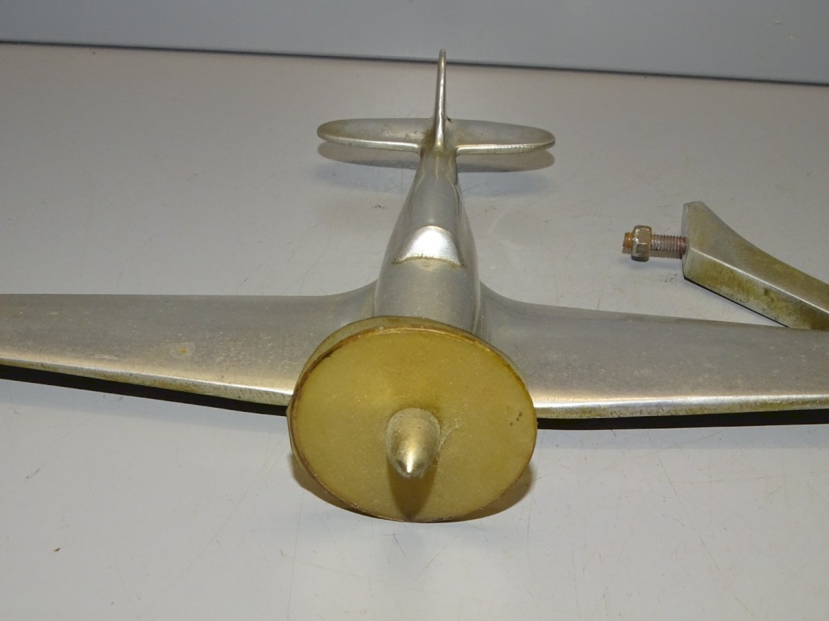 Ancien avion spitfire en alu avec l'hélice ronde et un pied pour le fixer sur un pied de lampe ou autre - un petit défaut de fonte au bout de la queue (voir photos)  jus de trouvailles, sorti de grenier, En bon état  - Réf. 1V250703/264 - un second identique sous N° /265) Longueur 17 cm - largeur 21 cm - Hauteur + ou - 16 cm - Poids 0,280 kg     Pour me contacter mon adresse mail : EXPEDITION POSSIBLE EN MONDIAL RELAY ou COLISSIMO sur demande TRES BON EMBALLAGE GARANTI     MERCI de BIEN REGARDER TOUTES les PHOTOS car ELLES FONT PARTIE INTEGRANTE de la DESCRIPTION et PERMETTENT de VOIR l'OBJET AU MIEUX  avec SES PETITS DEFAUTS EVENTUELS - État:Occasion: Objet ayant été utilisé. Consulter la description du vendeur pour avoir plus de détails ...Occasion: Objet ayant été utilisé. les éventuelles imperfections.