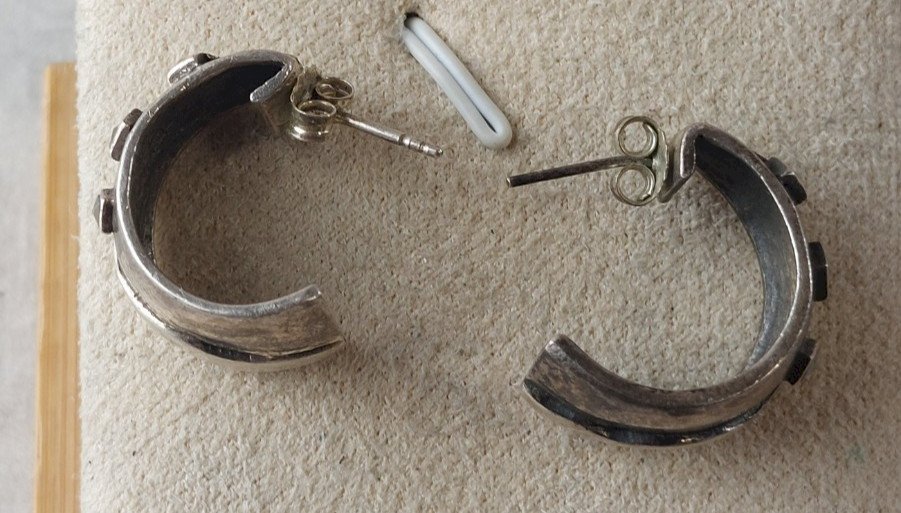 Ancienne paire de boucles d'oreilles, décor marcassites, en argent massif