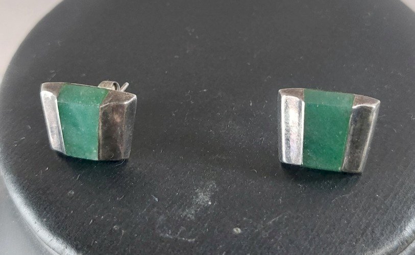 Ancienne parure, collier + boucles d'oreilles, agate, en argent massif, Taxco en bon état, manque un fermoir sur une boucle d'oreille collier marqué 925 Mexico, les boucles d'oreilles ne sont pas marquées dimensions boucles d'oreilles1,4 cm X 1,2 cm largeur collier 1,2 cm longueur collier 41 cm poids total 48,14 gr v oir photos Consultez mes autres objets ! réduction des frais de port en cas d'achat groupé État:OccasionObjet ayant été porté. les éventuelles imperfections. Marque:Taxco Pays d'origine:Mexique Pureté métal:925 parties pour 1000 Eléments parure:Boucles d'oreille, Collier Métal:Argent massif
