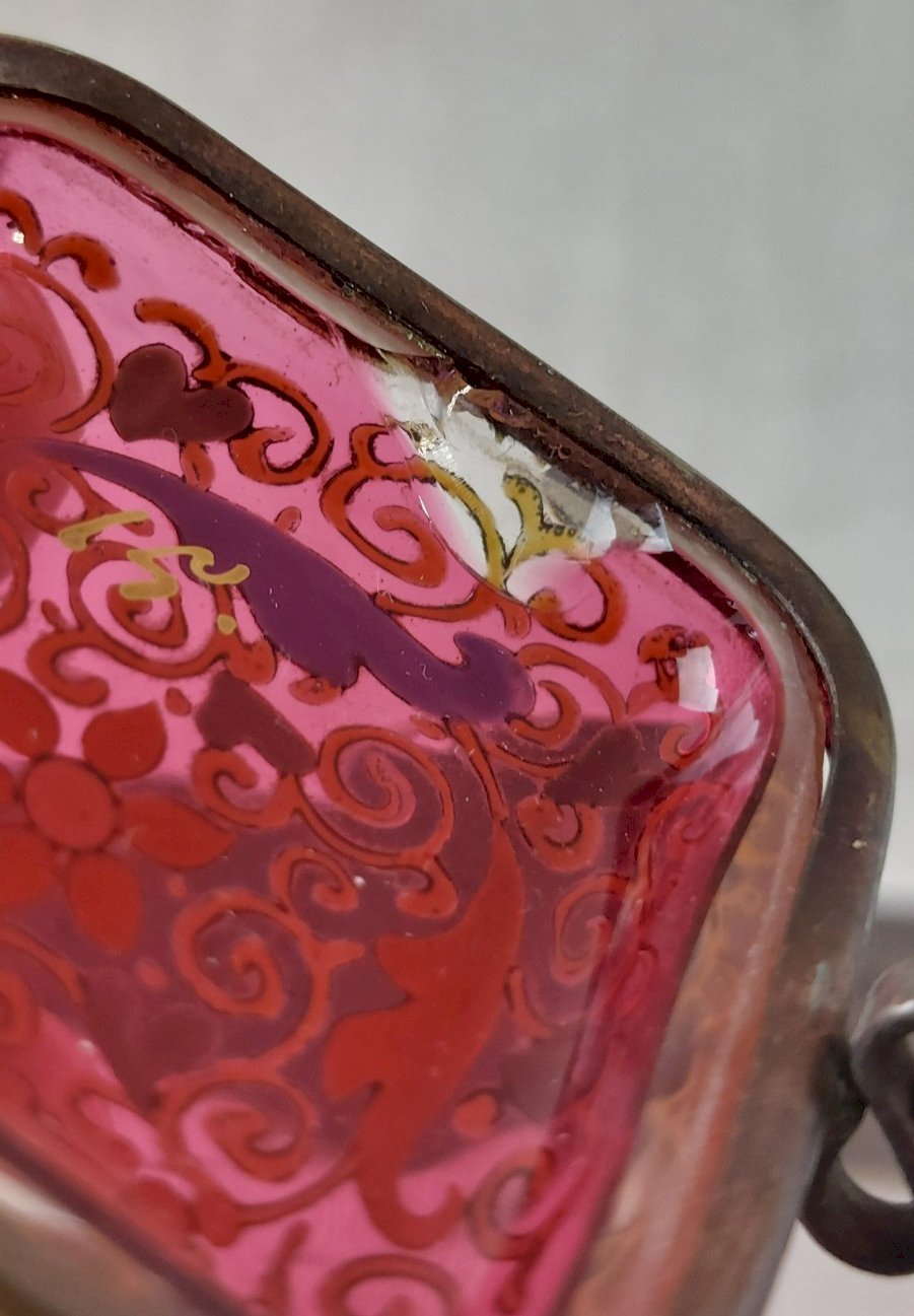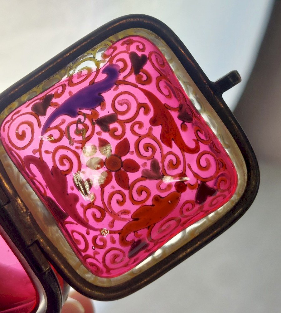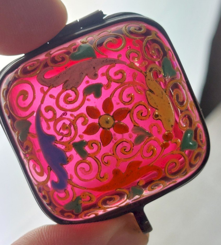 Ancienne petite boîte à pilule rectangulaire / pilulier, en verre émaillé