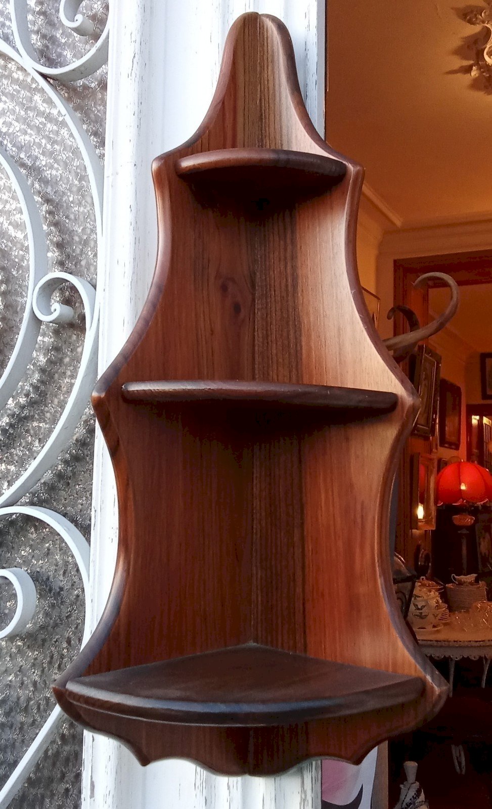 Ancienne Petite étagère Angle Bois 3 Niveaux meuble appoint Old Wooden shelf