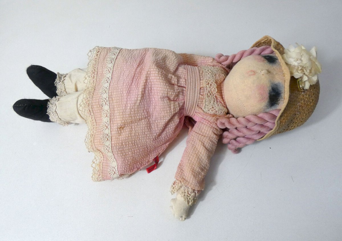 Très jolie poupée Marie d'O, de 54 cm. Dans les teintes rose tendre, son état est très correct, on notera un chausson de percé comme souvent, c'est le petit point faible de ces poupées. Autrement elle est en très bon état. Sa tenue est complète, ses vêtements sont étiquetés "Marie d'O", la poupée est signée sur la nuque. Elle a même encore sa fleur sur son chapeau tressé. C'est une belle pièce de collection qui ravira sans le moindre doute son prochain acquéreur. État:Occasion: Objet ayant été utilisé. Consulter la description du vendeur pour avoir plus de détails ...Occasion: Objet ayant été utilisé. les éventuelles imperfections.