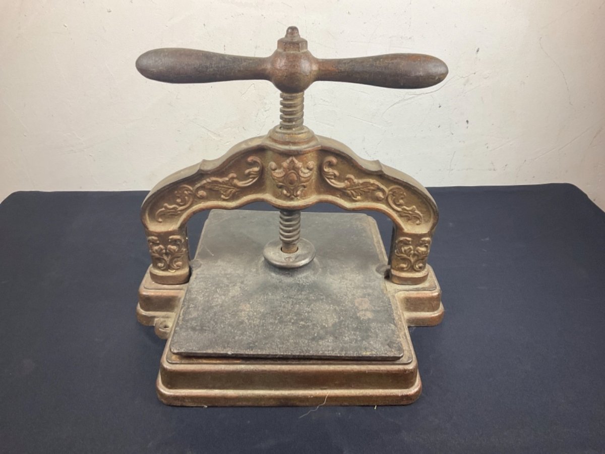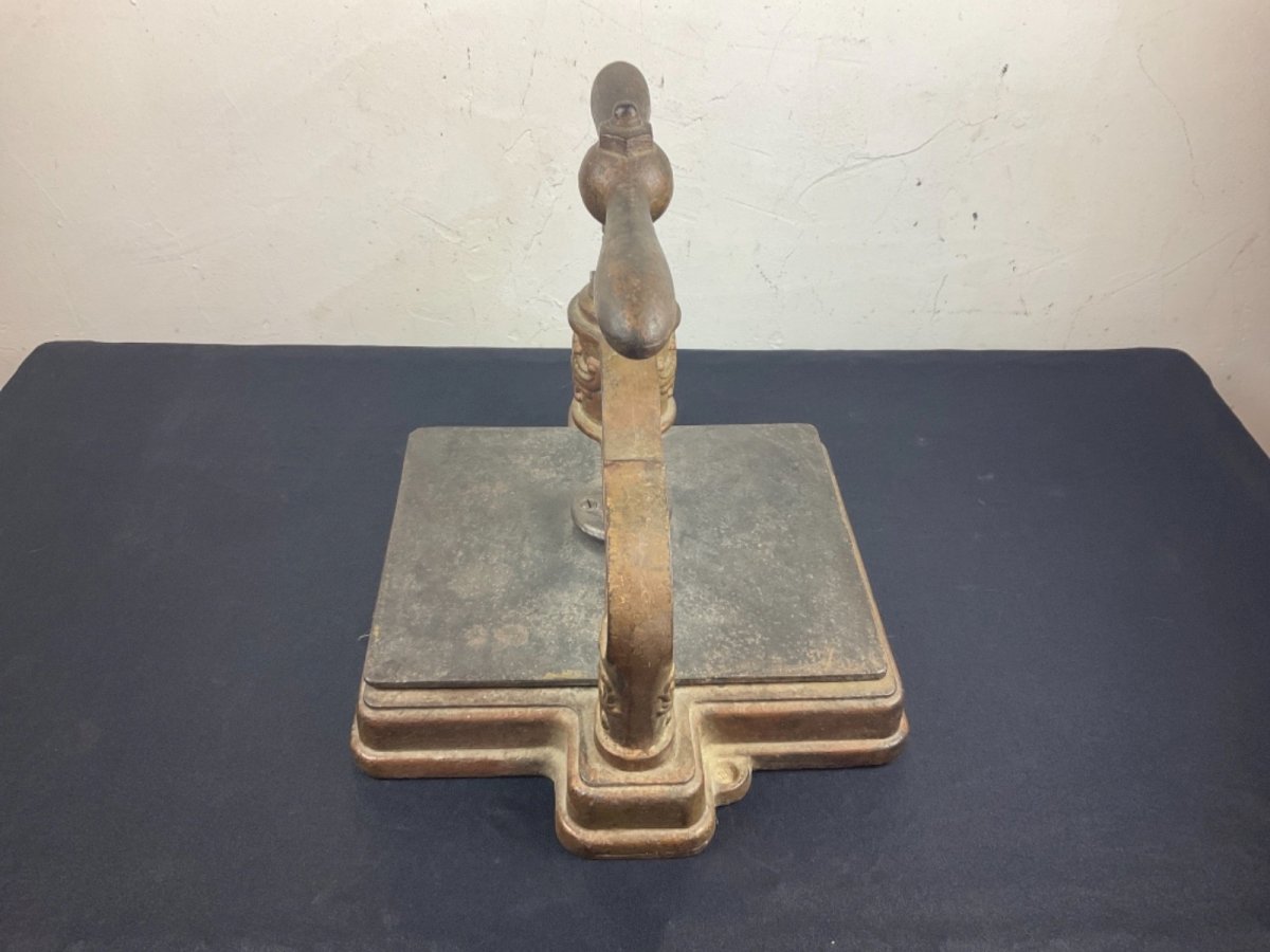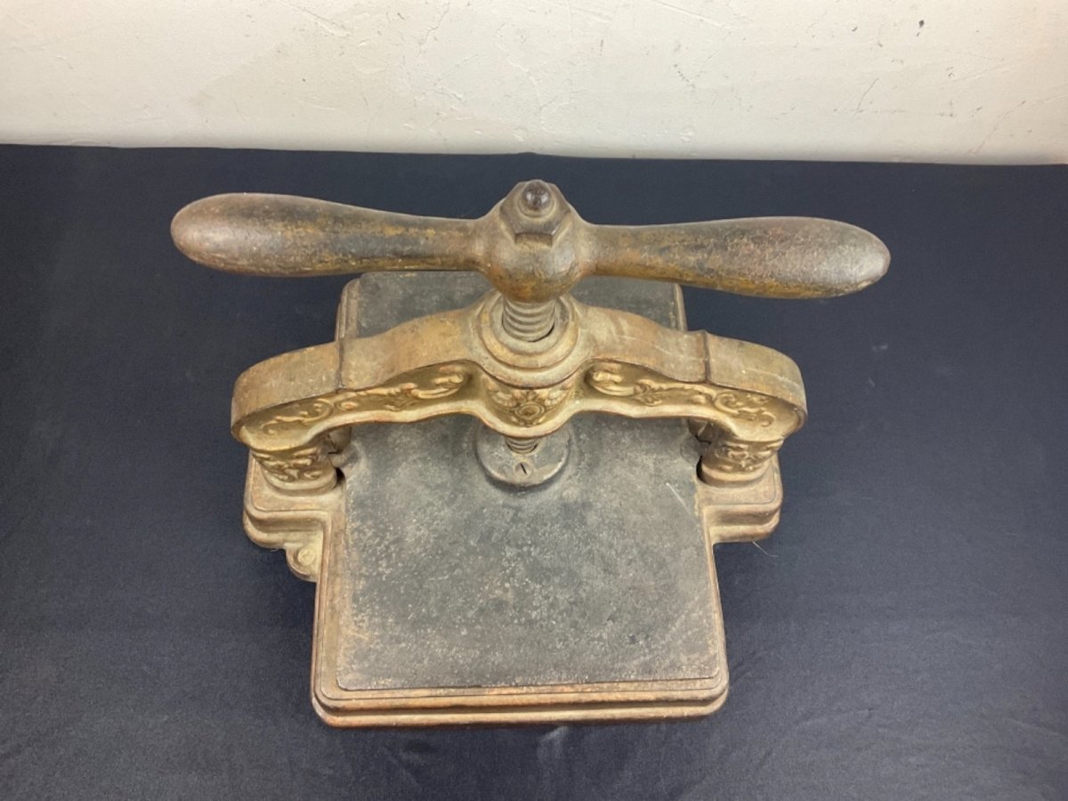 Ancienne Presse pour Livre à Relier en Fonte reliure Dimension : 36,5 x 31,5 cm Hauteur : 30 cm Authenticité:Original Type:Objet de métier Origine:France paris Sous-type:presse à relier Style:fin 19ème début 20e Matière:fonte