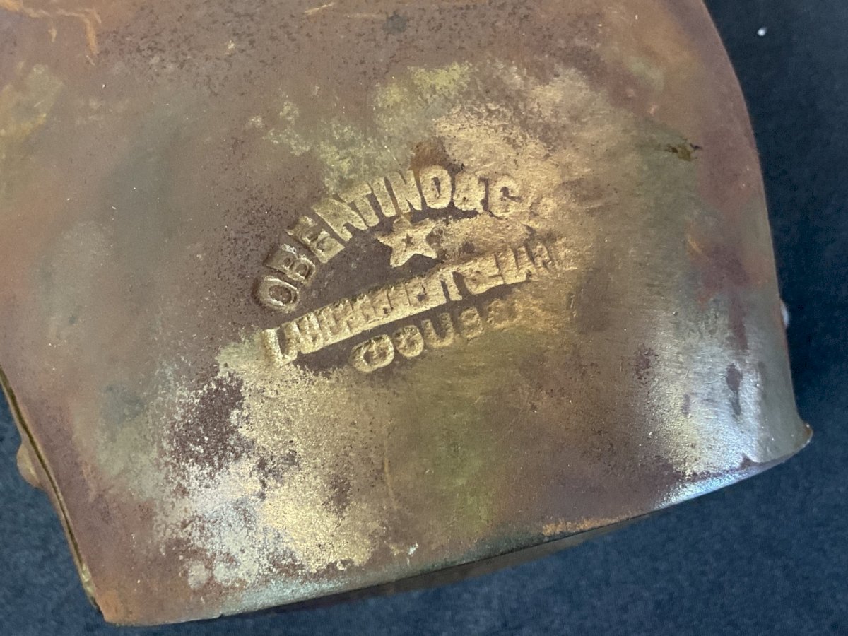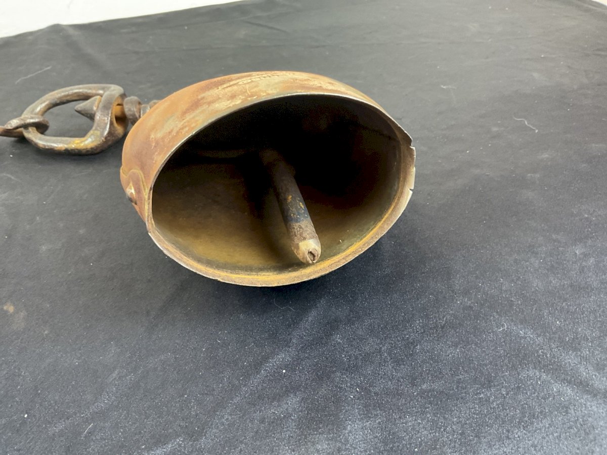 Ancienne cloche de vache OBERTINO LABERGEMENT Style Chamonix Largeur : 12 cm Hauteur : 13 cm Type:Objet de métier Marque:obertino Origine:France Période:Art Déco Sous-type:Cloche Matière:Bronze