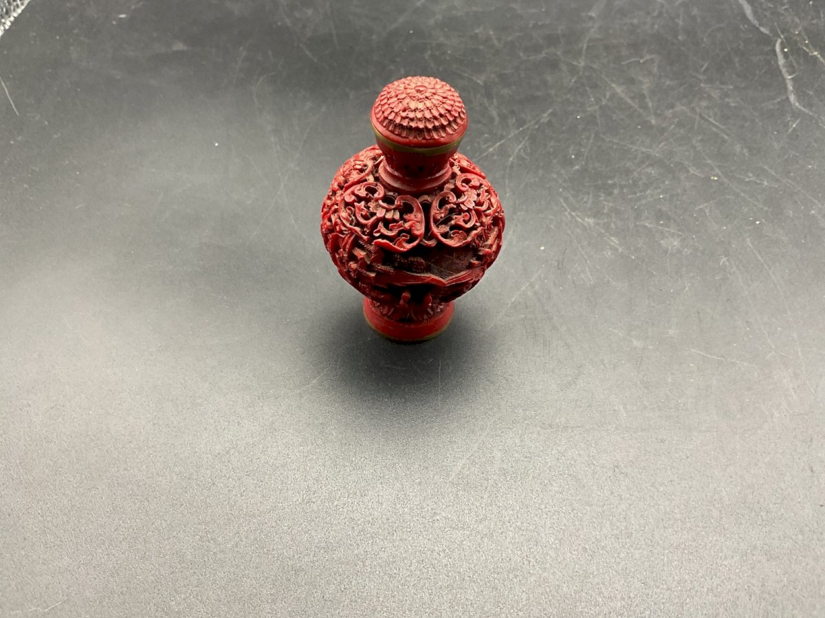 ANCIENNE Tabatière en Laque Rouge de CINABRE CHINE Début XXème Signée Hauteur : 6,2 cm Authenticité:Original Marque:asie Type:Objet de vitrine, Décoratif Période:Design du XXème Origine:Asie Sous-type:Tabatière Matière:laque
