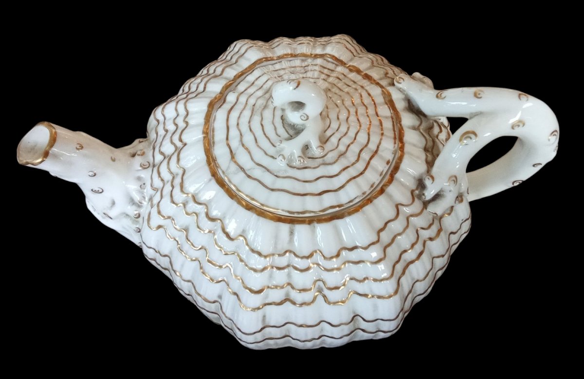 Ancienne Théière Ancien Crémier Porcelaine Belleek Tridacna 19 Ème Siècle