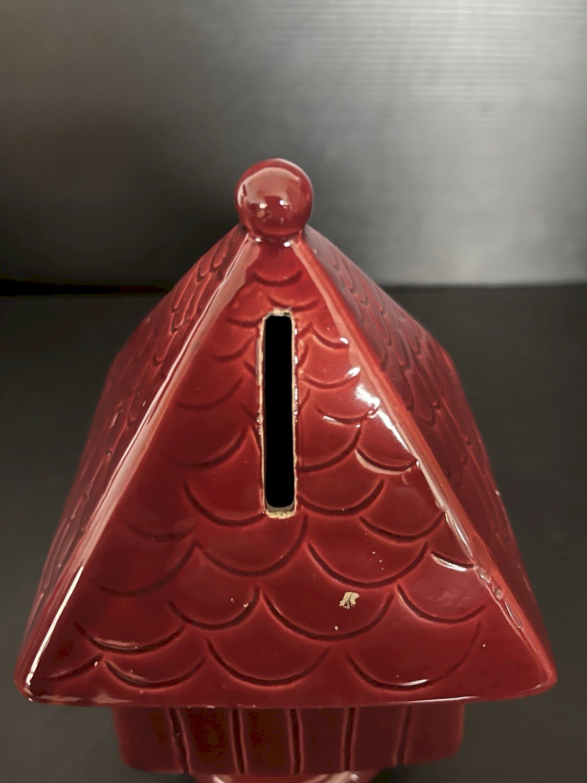 ancienne Tirelire à casser Céramique rouge design moulin à vent France vintage