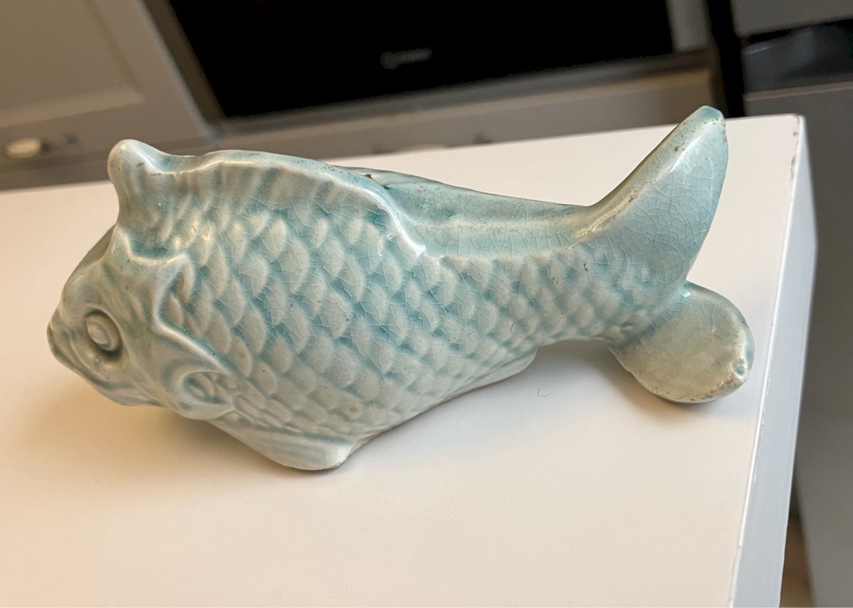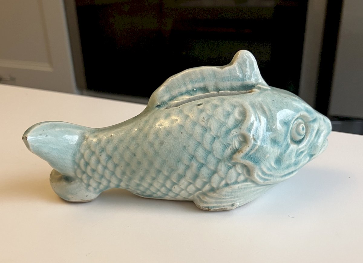 ancienne tirelire a casser en faience emaillee poisson dimensions 14,2x5,2x6,7 cm hauteur bon etat  expedition par MONDIALRELAY