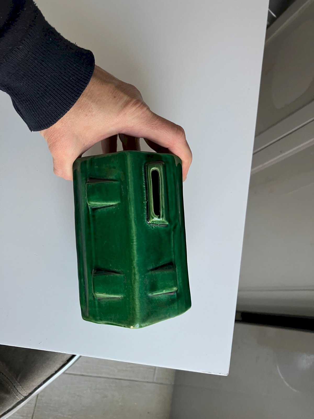 ancienne tirelire a casser en faience emaillee dimensions 13,8x9,7x9,7 cm hauteur bon etat general - faiencage et petites egrenures voir photos expedition par MONDIALRELAY