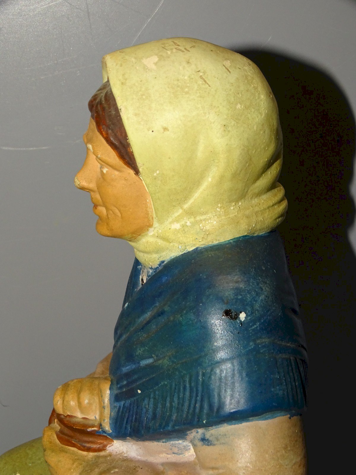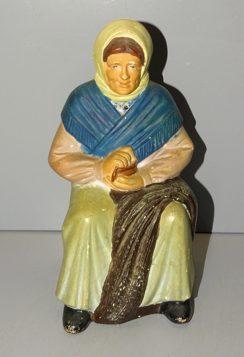 -ANCIENNE TIRELIRE A CASSER SOUVENIR BORD de MER TERRE CUITE FEMME de Pêcheur D