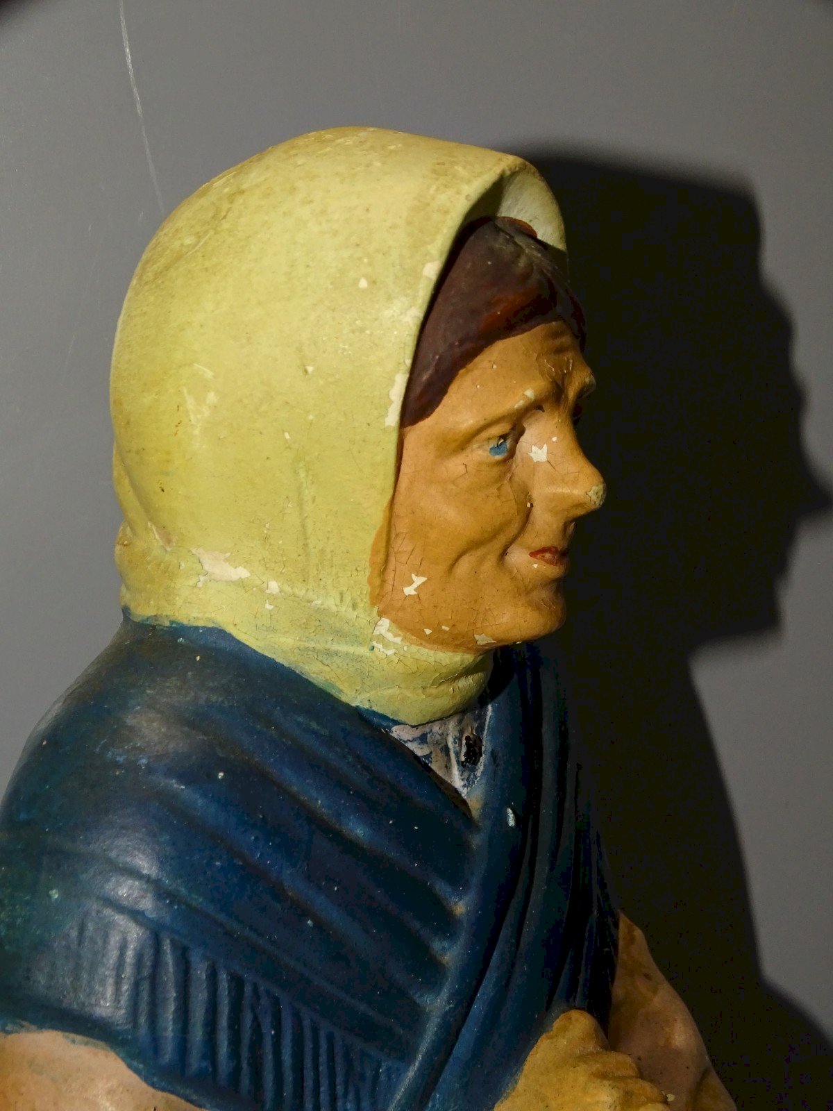 Jolie tirelire à casser en terre cuite - Souvenir de Bord de Mer - Femme de pêcheur - avec petites usures de couleur et petite usure au bout du nez -  (voir photos )  jus de trouvailles, sortie de grenier, en bon état - Réf. 1V240216/220 - Pendant Homme en cours voir dernière photo - Hauteur 21,2 cm - Longueur 10,5 cm - largeur 10,3 cm -  Poids 453 g     Pour me contacter mon adresse mail : EXPEDITION POSSIBLE EN MONDIAL RELAY ou COLISSIMO sur demande TRES BON EMBALLAGE GARANTI     MERCI de BIEN REGARDER TOUTES les PHOTOS car ELLES FONT PARTIE INTEGRANTE de la DESCRIPTION et PERMETTENT de VOIR l'OBJET AU MIEUX  avec SES PETITS DEFAUTS EVENTUELS -