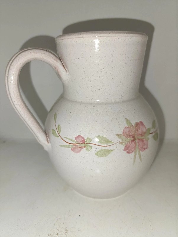 ancien pichet a decor floral poincon a identifier en bon etat hauteur 18cm