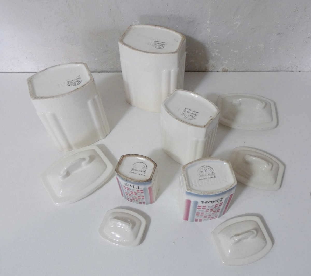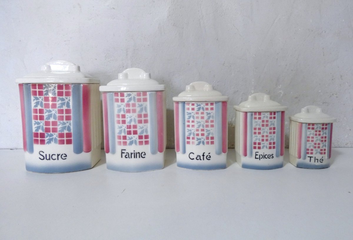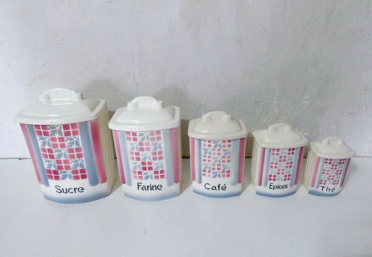 Anciens pots gigognes en faïence - Ditmar Urbach - sucre farine café épices thé