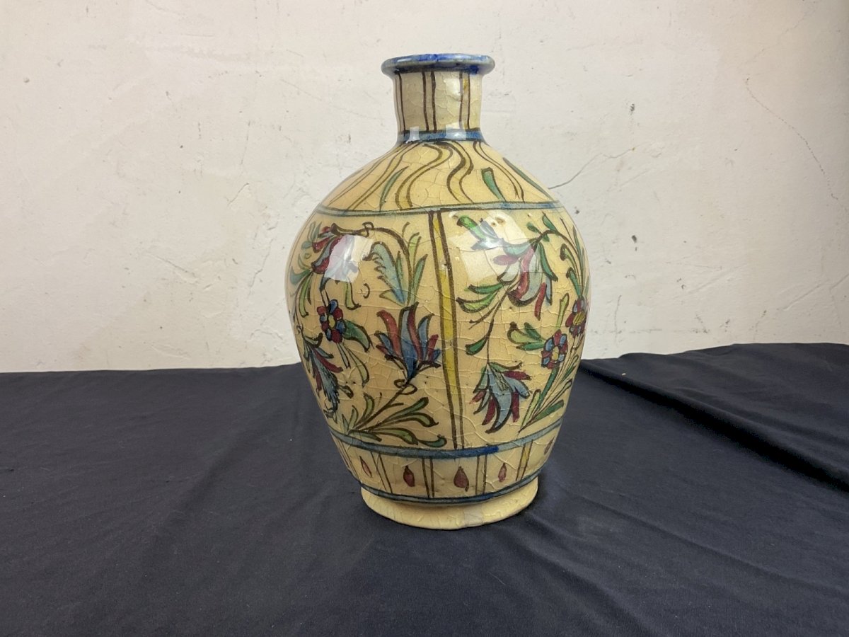 ANTIQUE PERSAN VASE EN CERAMIQUE VERNISSEE  ART KADJAR ISLAMIQUE QAJAR PERSE Hauteur : 22 cm Authenticité:Original Type:Art nouveau / Art deco Origine:La Perse / Persia Sous-type:Vase illustre / Illustrated vase Matière:Céramique Style:Persan / Art Qajar