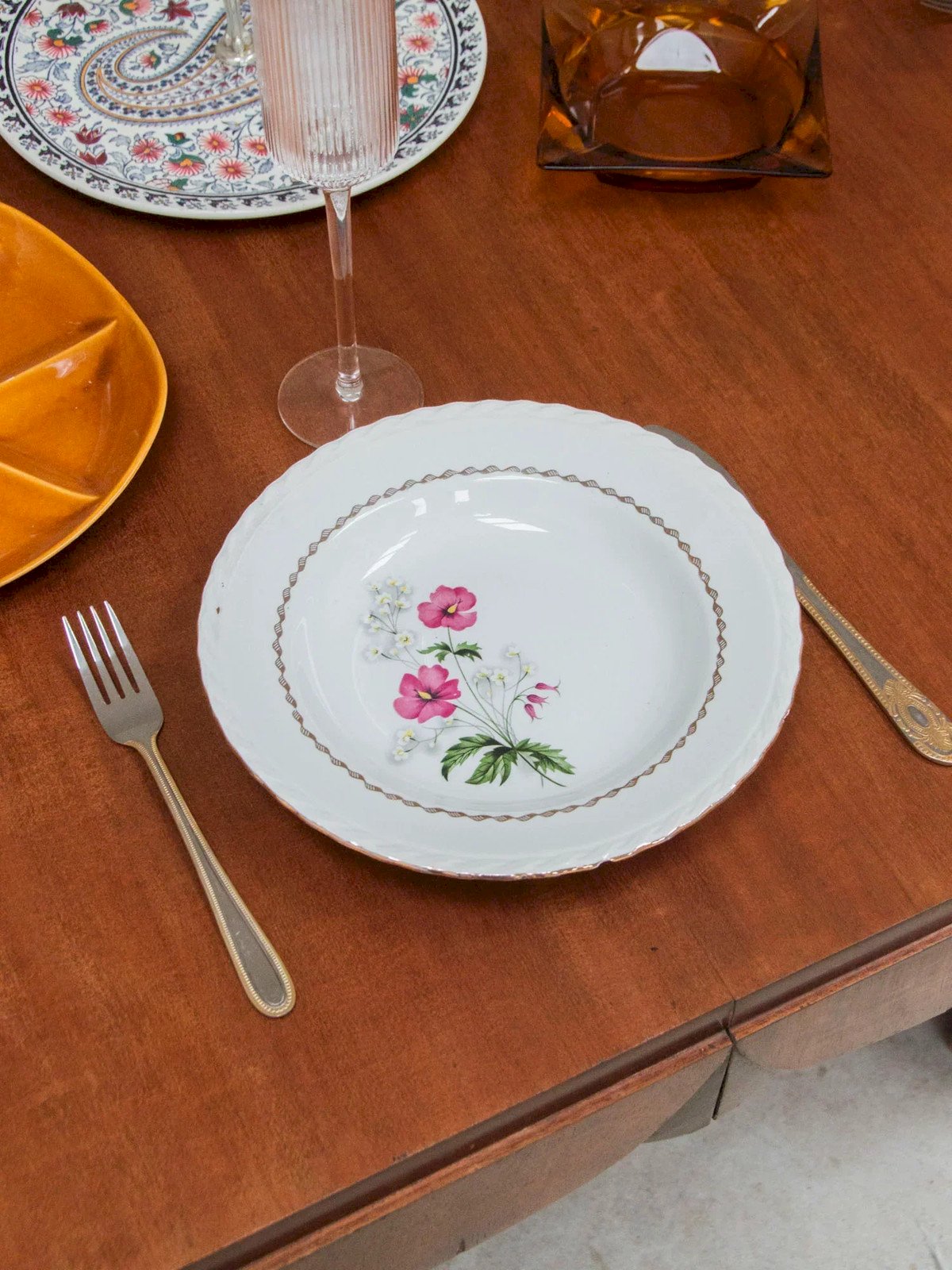 Découvrez un lot de six assiettes creusées en céramique émaillée blanche, soulignées d'un liseré doré et ornées d'un délicat dessin floral au centre. Le profil creux accueille sauces et préparations généreuses, pour une présentation soignée des entrées, soupes ou plats de pâtes. Leur allure raffinée mêle élégance classique et charme discret, idéale pour une table conviviale ou un dîner inspiré. Un ensemble qui installe une ambiance chaleureuse et maîtrisée. Usures légères. Hauteur : 3 cm Diamètre : 23 cm État:Occasion: Objet ayant été utilisé. Objet présentant quelques marques d'usure superficielle, ...Occasion: Objet ayant été utilisé. Objet présentant quelques marques d'usure superficielle, entièrement opérationnel et fonctionnant correctement. Il peut s'agir d'un modèle de démonstration ou d'un objet retourné en magasin après une courte période d'utilisation. les éventuelles imperfections. Marque:Debongout Type:Produit chiné Matériau:Céramique Style:Campagne