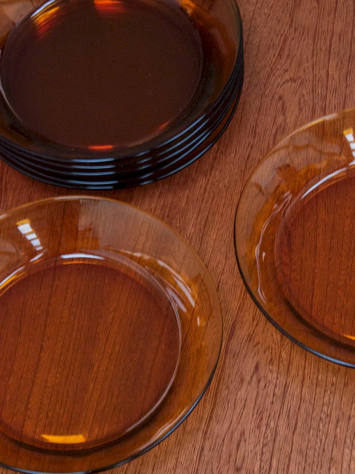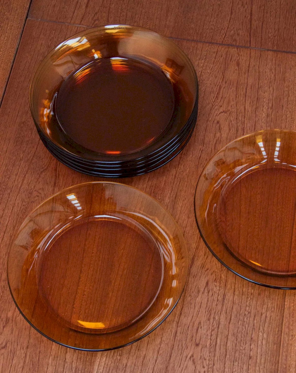 Ajoutez à votre table une touche lumineuse avec ce lot de six assiettes creuses en verre orange, dont le translucide capte la lumière et réchauffe l'assiette. Le format creux accueille soupes, salades ou desserts avec une élégance discrète, tandis que la teinte chaleureuse instaure une atmosphère conviviale et contemporaine. Le verre apporte une sensation légère et raffinée, facile à associer à une vaisselle neutre ou contrastée, idéal pour un usage quotidien ou pour recevoir. Hauteur : 4 cm Diamètre de l'assiette : 19,5 cm État:Occasion: Objet ayant été utilisé. Objet présentant quelques marques d'usure superficielle, ...Occasion: Objet ayant été utilisé. Objet présentant quelques marques d'usure superficielle, entièrement opérationnel et fonctionnant correctement. Il peut s'agir d'un modèle de démonstration ou d'un objet retourné en magasin après une courte période d'utilisation. les éventuelles imperfections. Marque:Debongout Type:Produit chiné Matériau:Verre Style:Campagne