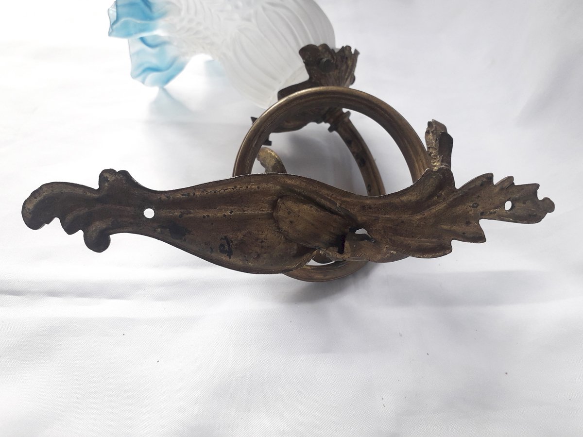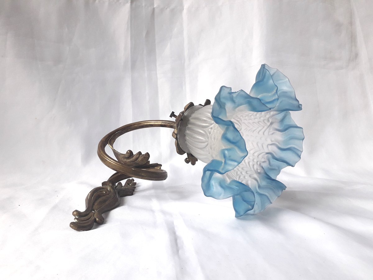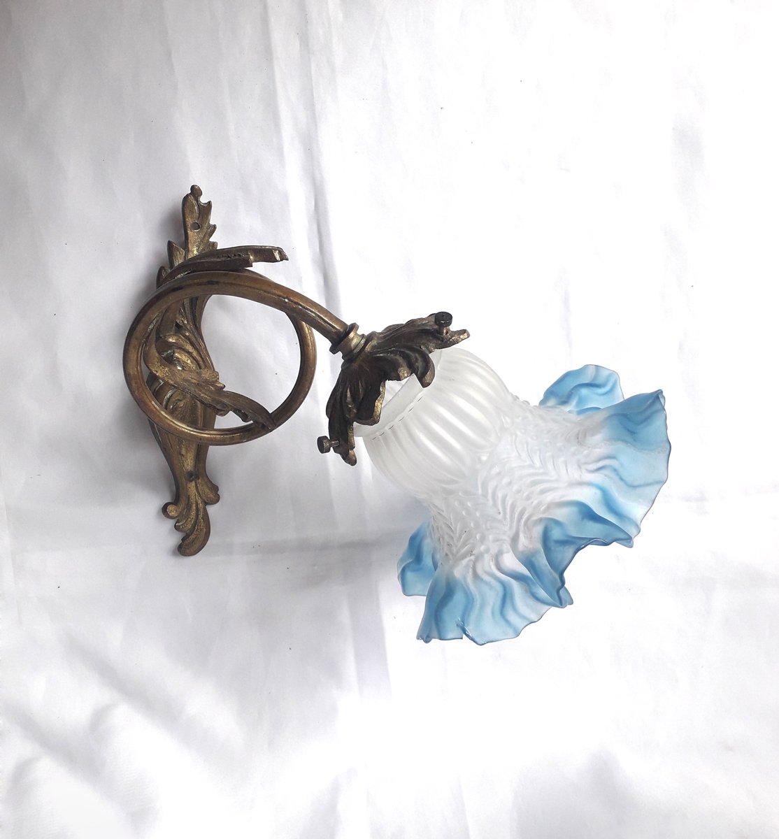 Applique 1900 bronze doré tulipe pâte de verre bleue