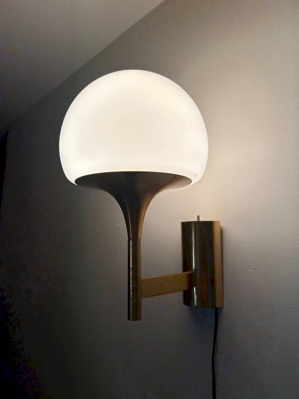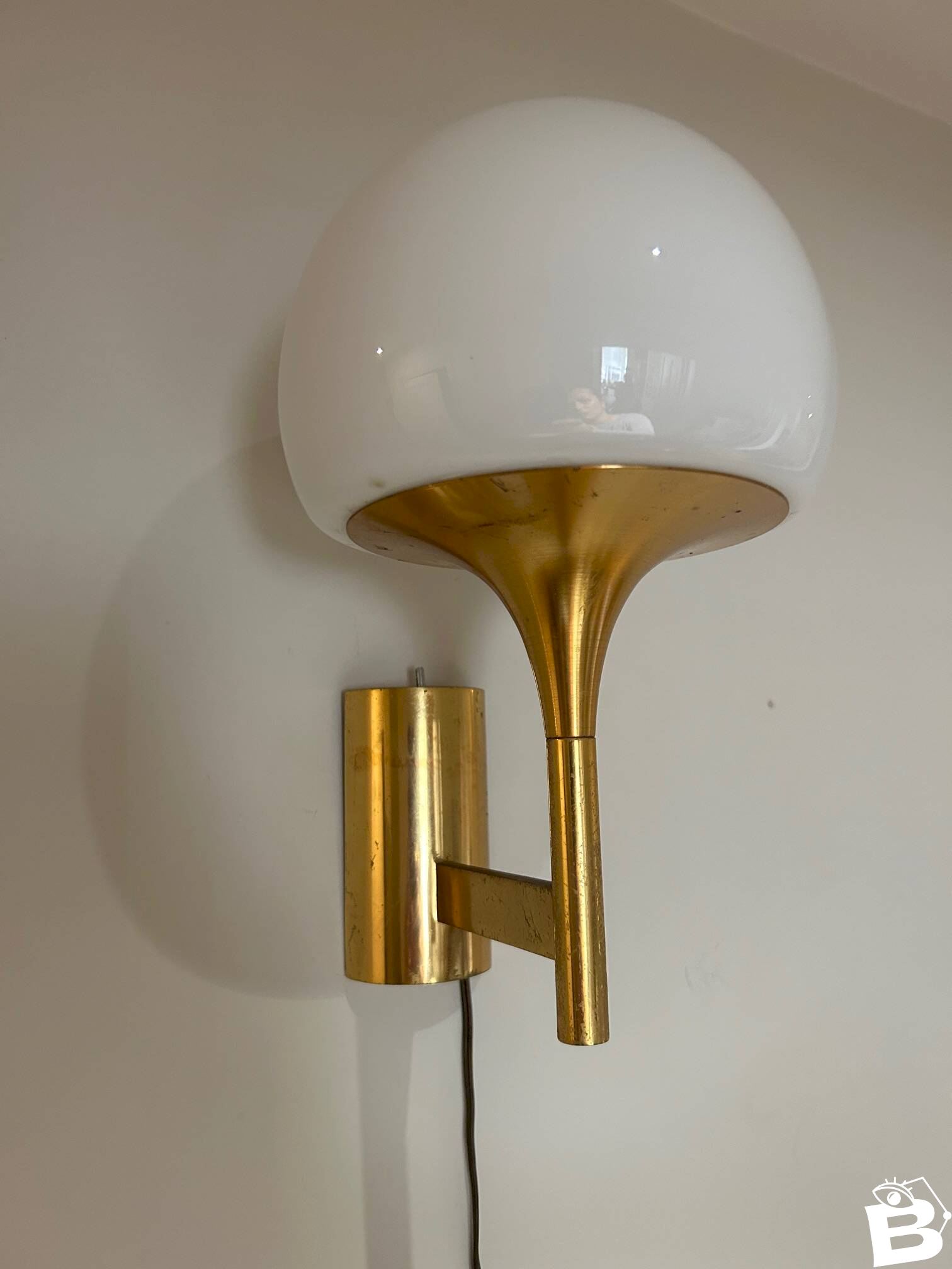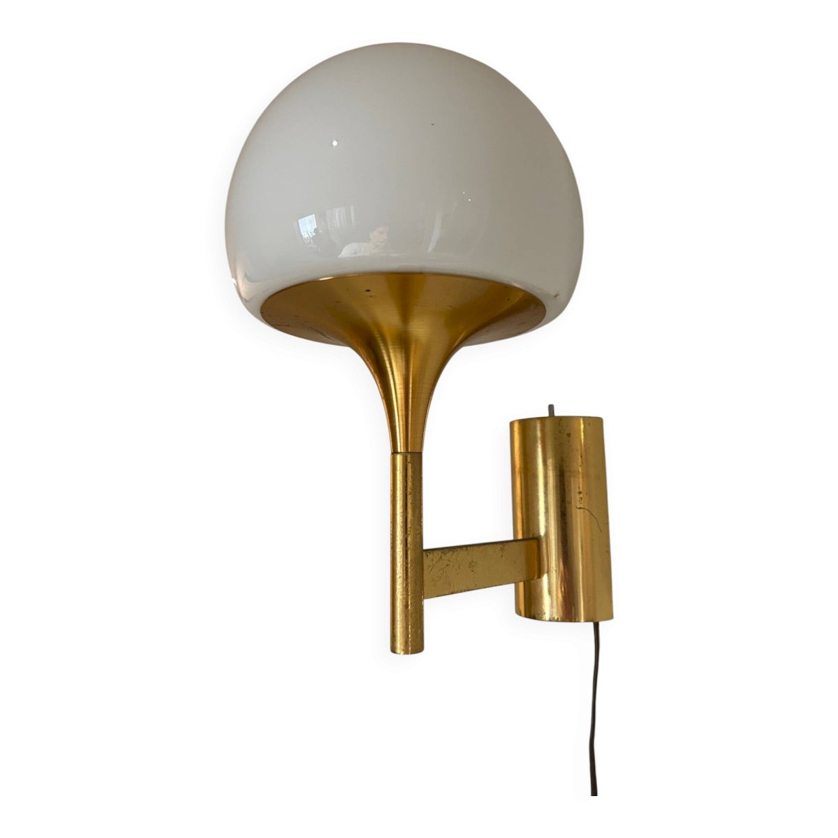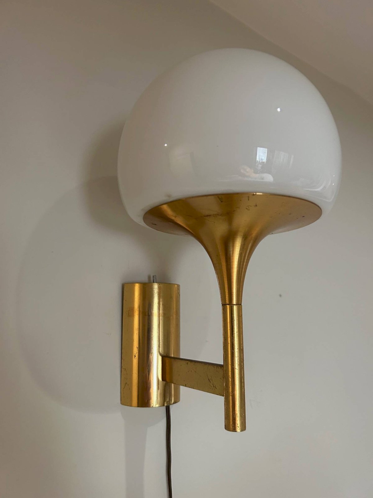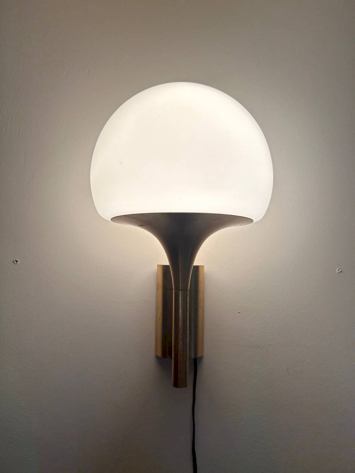 Applique murale Gaetano Sciolari, Italie, 1970s.Structure en laiton avec réflecteur en opaline blanche.Design sobre et moderne à la fois.