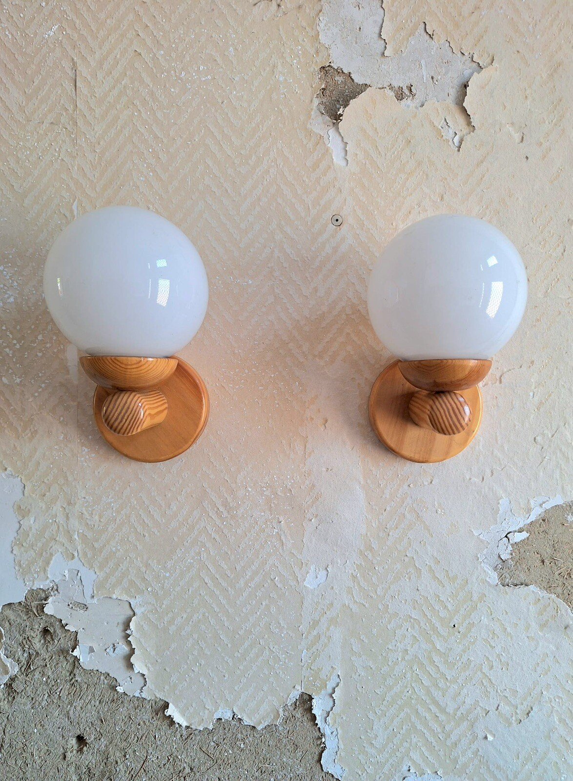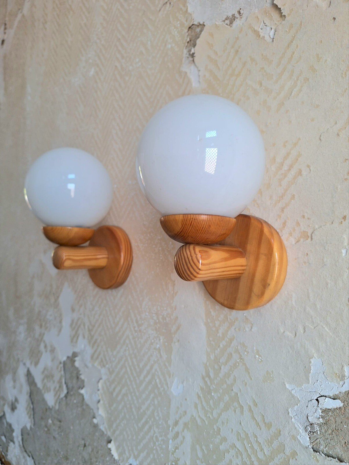 Merci de m’écrire si vous souhaitez me faire une offre. Appliques vintage, lampes anciennes, luminaires Appliques murales années 1960. Dimensions: diamètre du globe 12cm, hauteur 20cm, profondeur 14cm. Bois massif (pin). Globes en opaline. Design scandinave. Remise à mon domicile ou livraison possible via transporteur (ex 30€ vers Paris et région parisienne, me contacter pour d’autres destinations). Les délais de livraison de 2 à 4 jours sont imposés par et sont donc donnés à titre purement indicatif. Guillerme Temde danois suspension Type:Applique