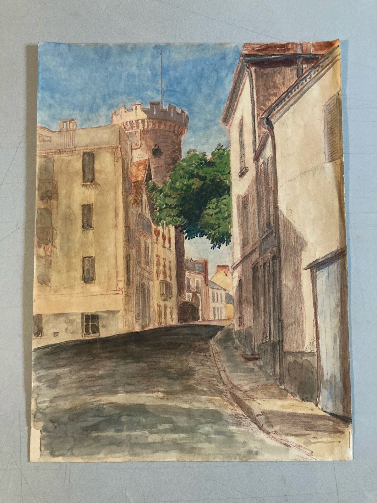 aquarelle Fin 19e à identifier Rue Tour De L Horloge Vichy Art Ancien