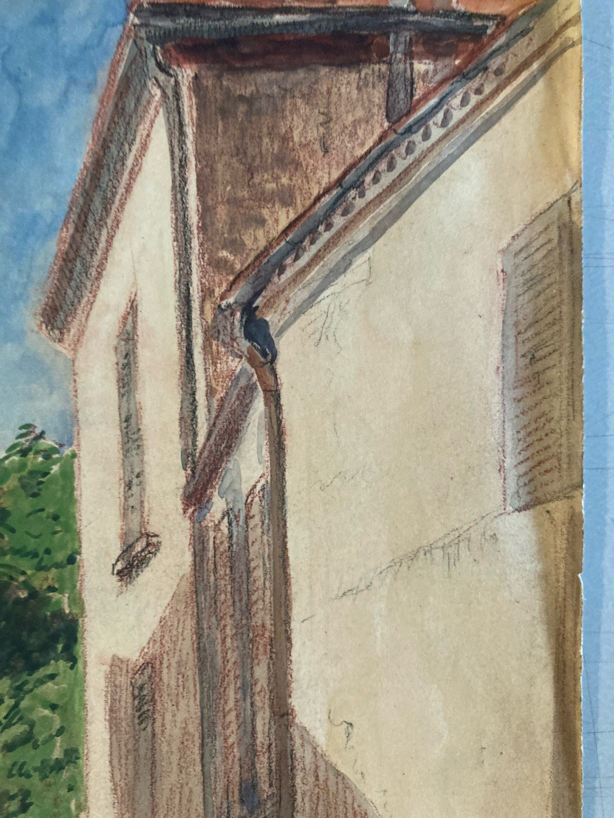 Dessin 1950 Aquarelle Peinture Village Art Brut Naïf À Identifier Ancien