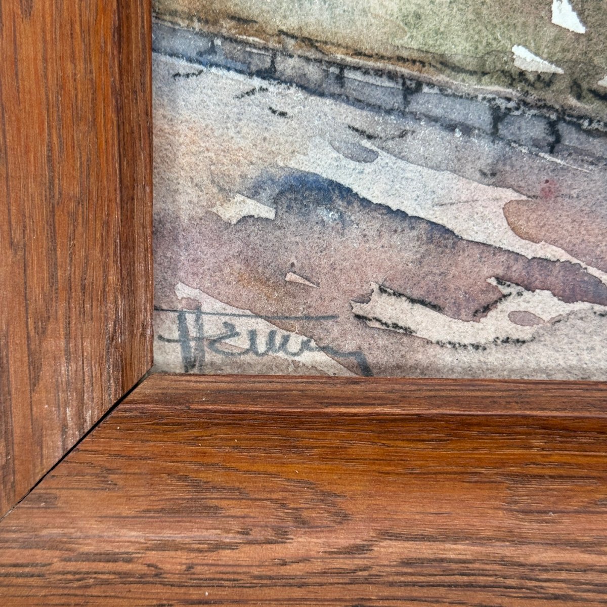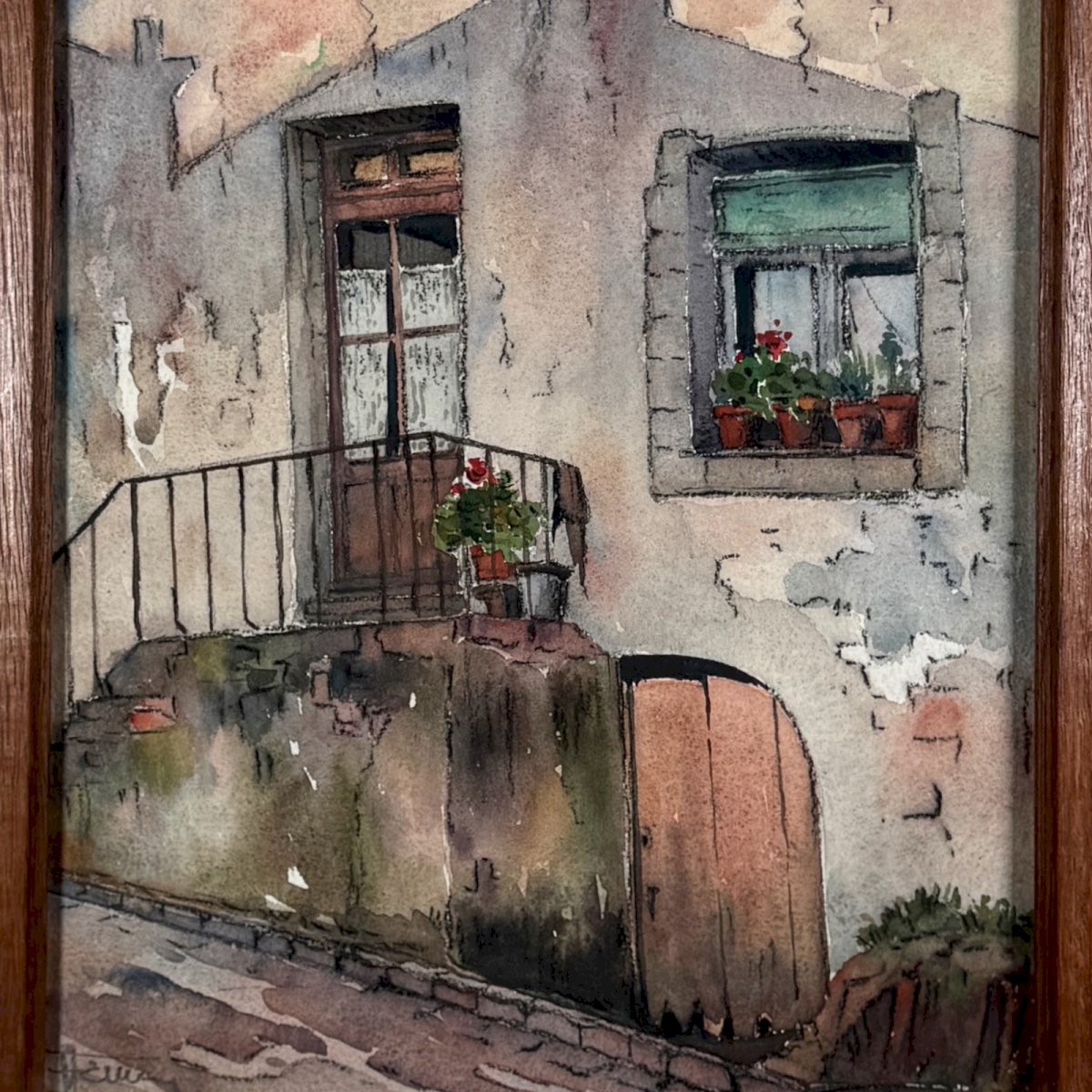 Aquarelle sur papier représentant l'entrée d'une maison début XXe A5849 Cette aquarelle sur papier représente probablement l'entrée d'une maison d'une maison de bourg. C'est un travail des années 20 ou 30. Elle porte une signature en bas à gauche que nous n'avons pas identifiée. L'œuvre est de belle facture et en bon état. Nos photos vous permettent d’apprécier la qualité de l’œuvre. Pour l’état, merci de bien détailler les photos. N’hésitez pas à zoomer. Les photos font partie intégrante de la description. Dimensions : - Cadre Hauteur : 36 cm Largeur : 32,5 cm Épaisseur : 3,5 cm - Œuvre Hauteur : 27,5 cm Largeur : 23,7 cm Je reste à votre disposition pour toute question. Authenticité:Inconnu Poids:Inconnue Hauteur:cm Style:Non-spécifié Genre:Inconnu Longueur:cm Largeur:cm Pays d'origine:France métropolitaine