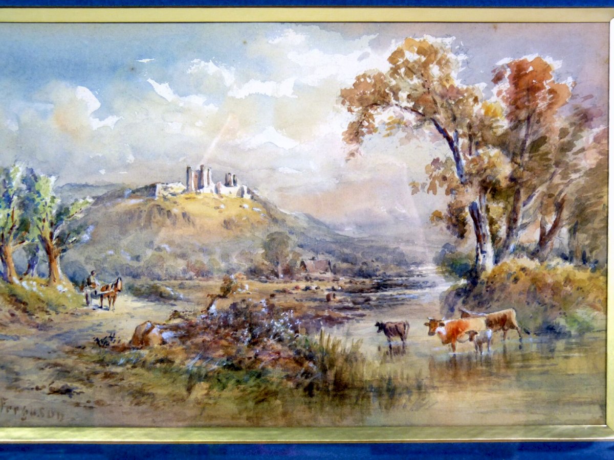 Aquarelle2 XIX° SCOTTISH SCHOOL "SCENE BUCOLIQUE" signée James W. Ferguson