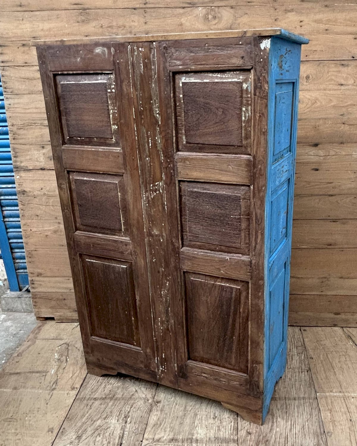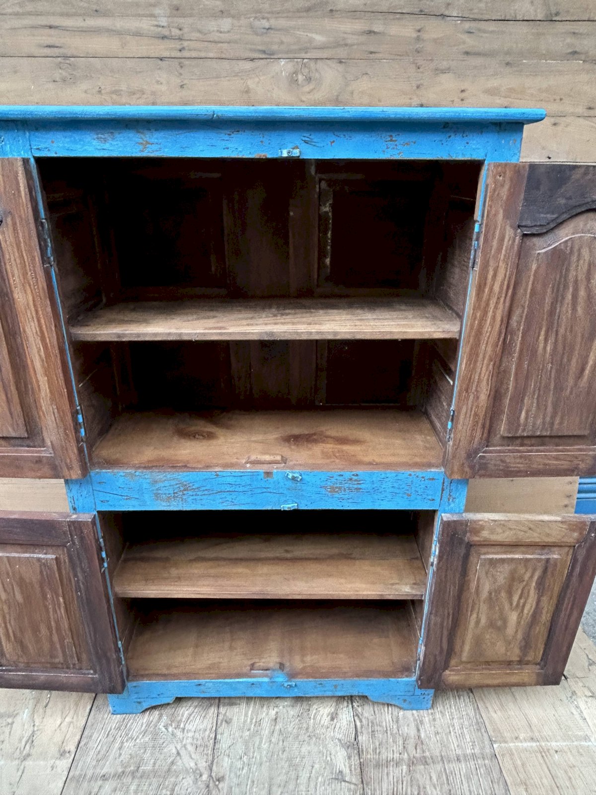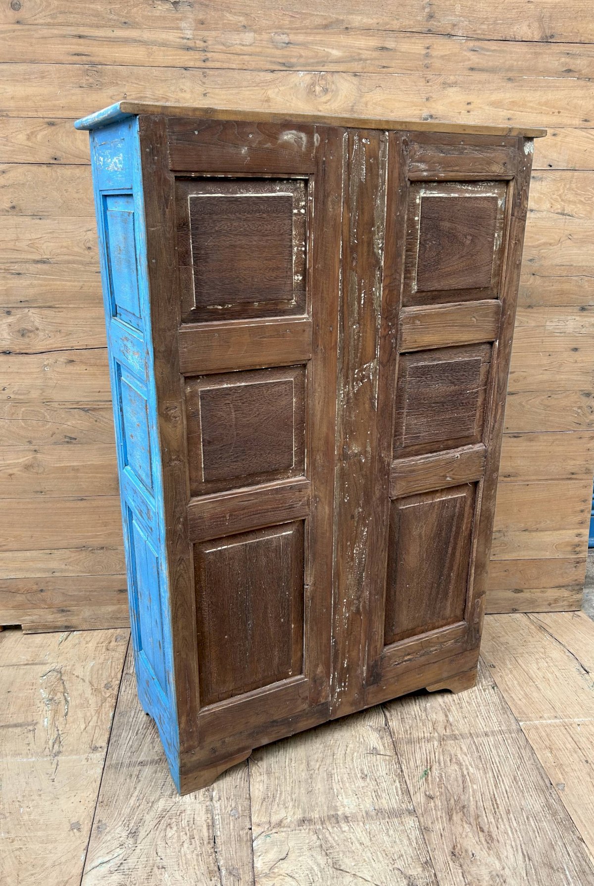 armoire rajasthanaise en teck birman avec patine d'origine / 94 x 41 x 146 cm - prof int: 32 cm - haut int de H en B: 32 - 29 - 28 - 25 cm - 82 kg