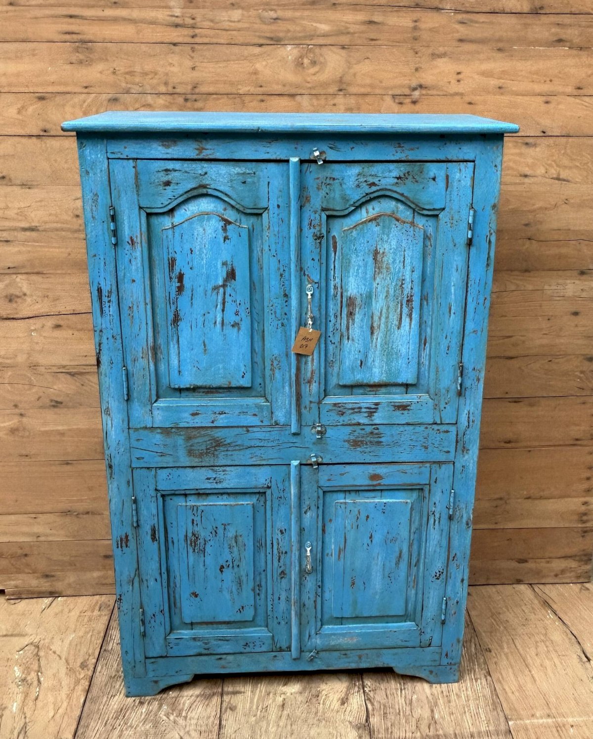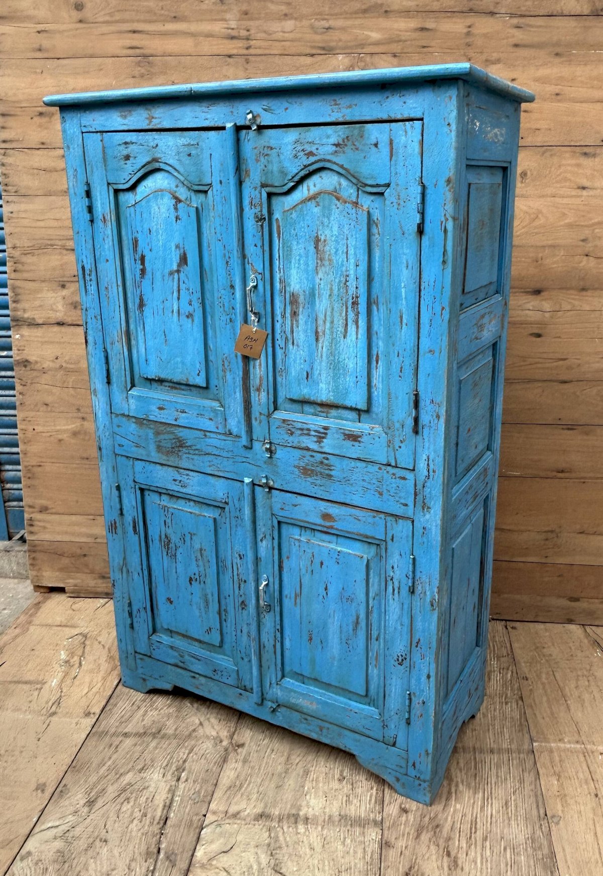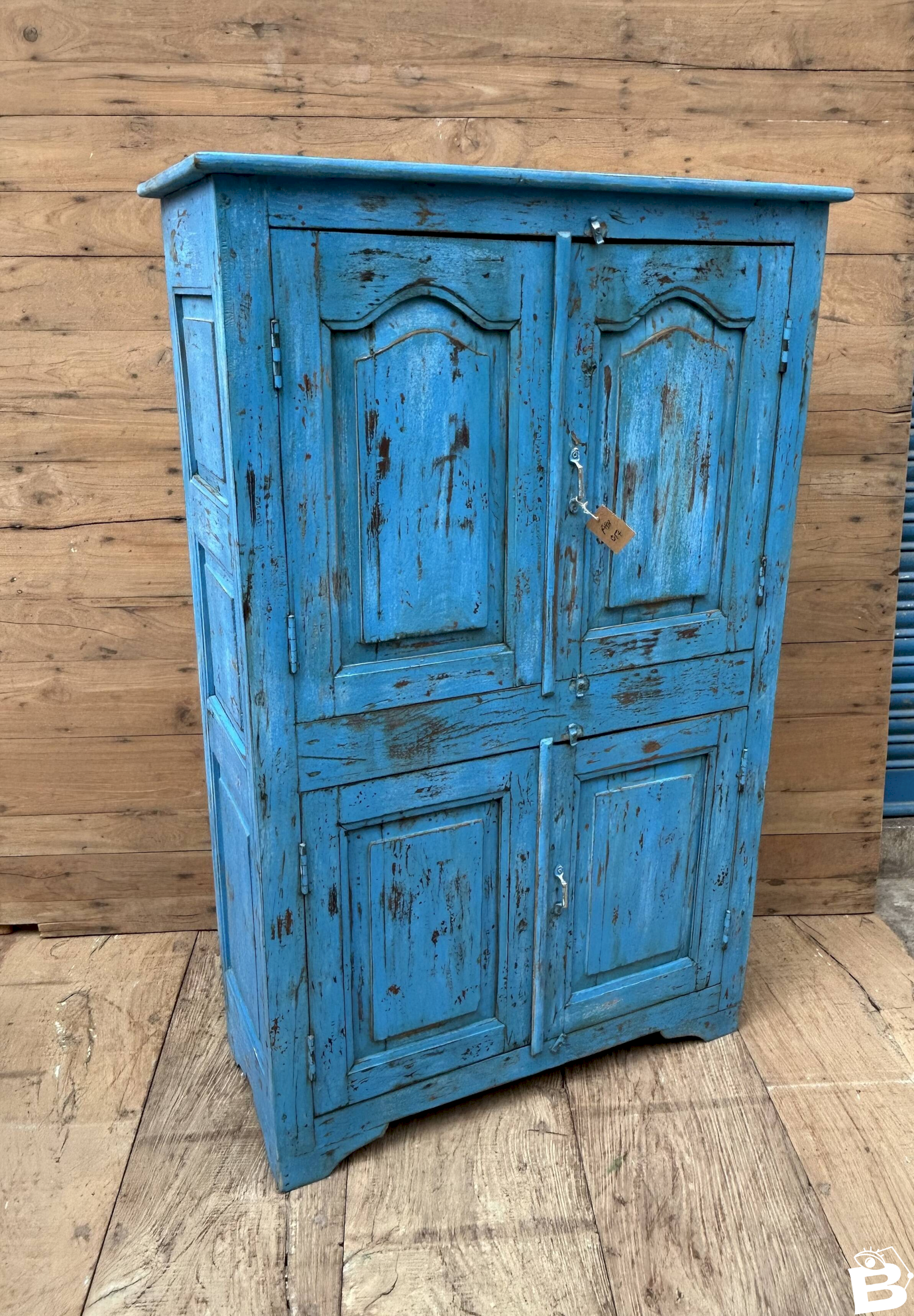 armoire rajasthanaise en teck birman avec patine d'origine / 94 x 41 x 146 cm - prof int: 32 cm - haut int de H en B: 32 - 29 - 28 - 25 cm - 82 kg